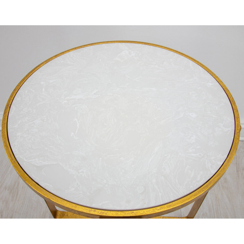 • Material: Iron, Glassy white Stone Top