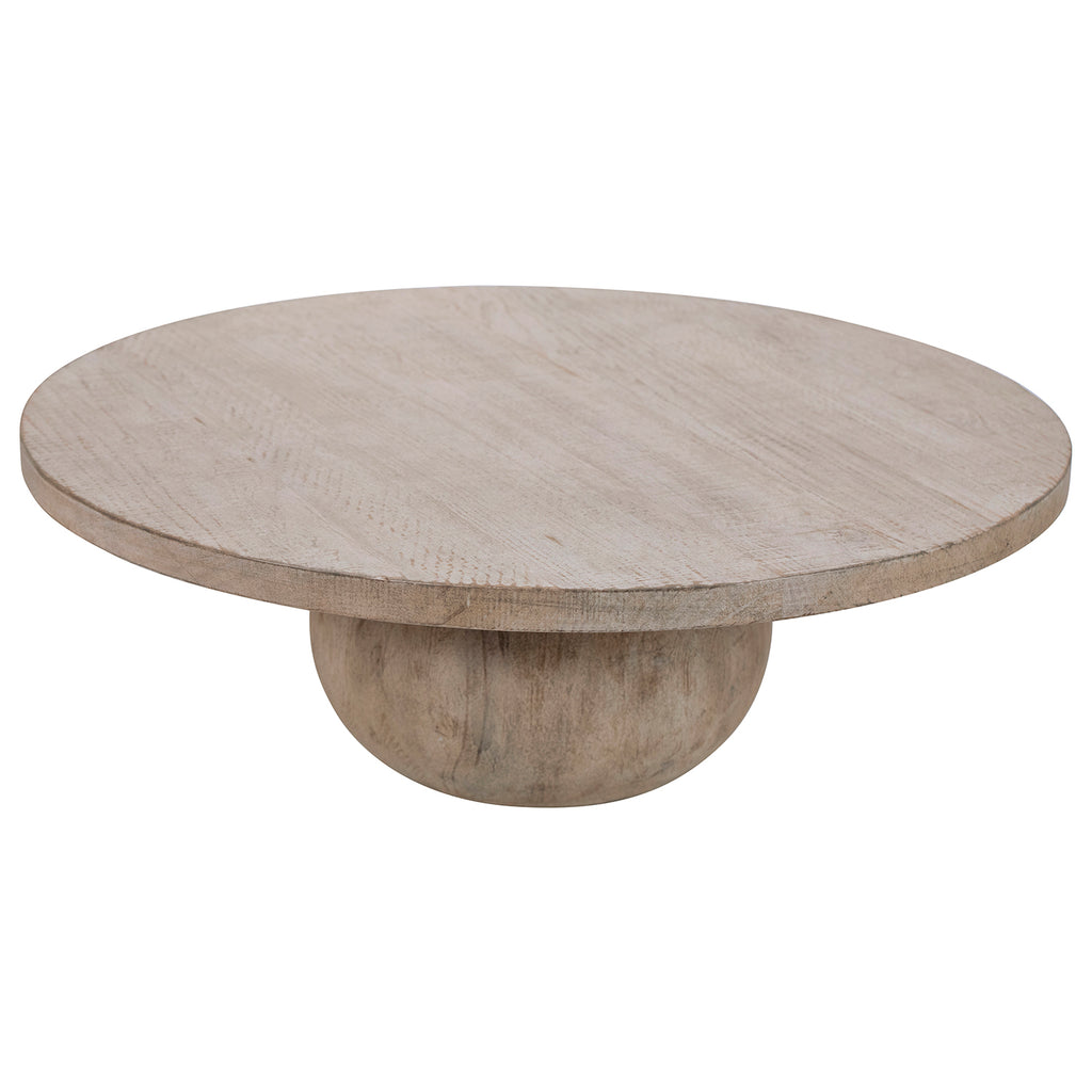 The beautifully curved reclaimed pine wood top of the Sophia coffee table perfectly harmonizes with the circular shape of its wood base. The light warm washed finish works great for any style or décor. Creating the perfect stage for displaying your favorite magazines, an eye-catching floral display, or resting a tray of refreshing drinks!