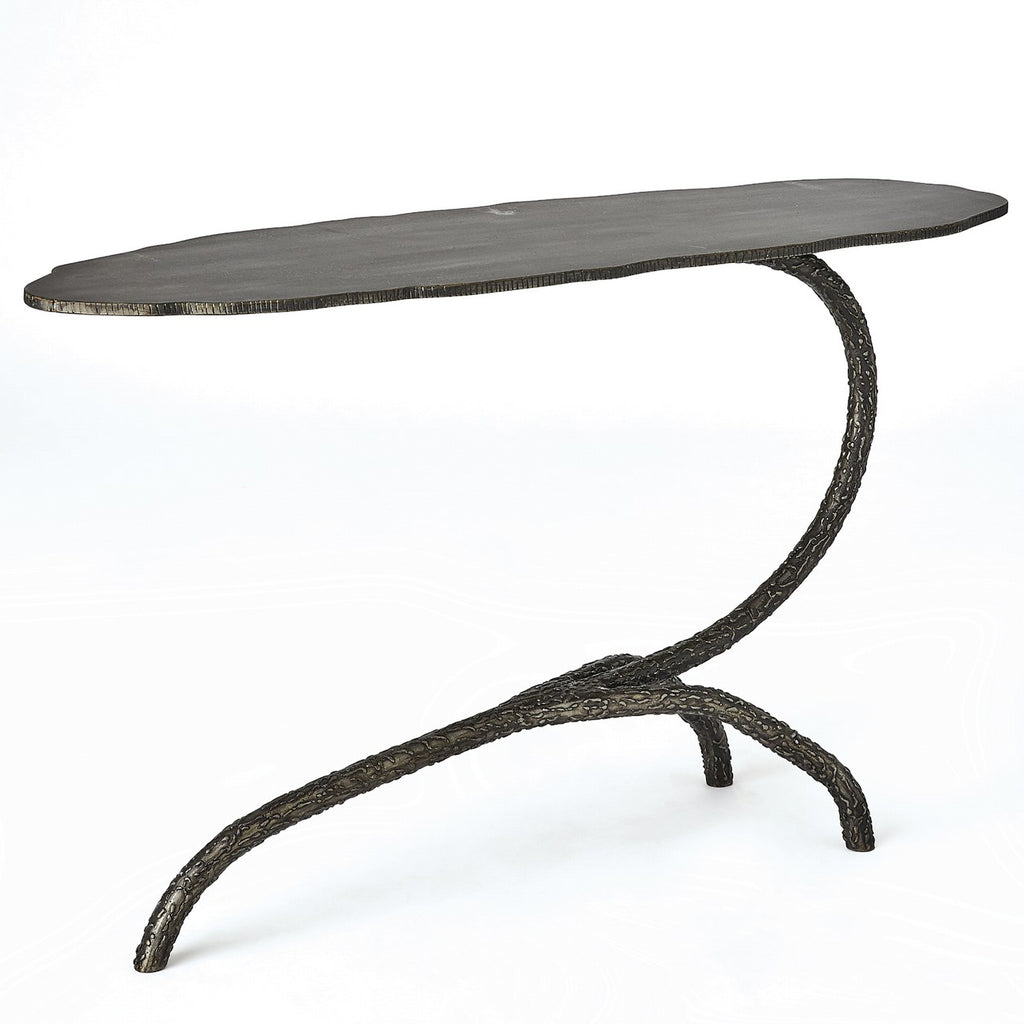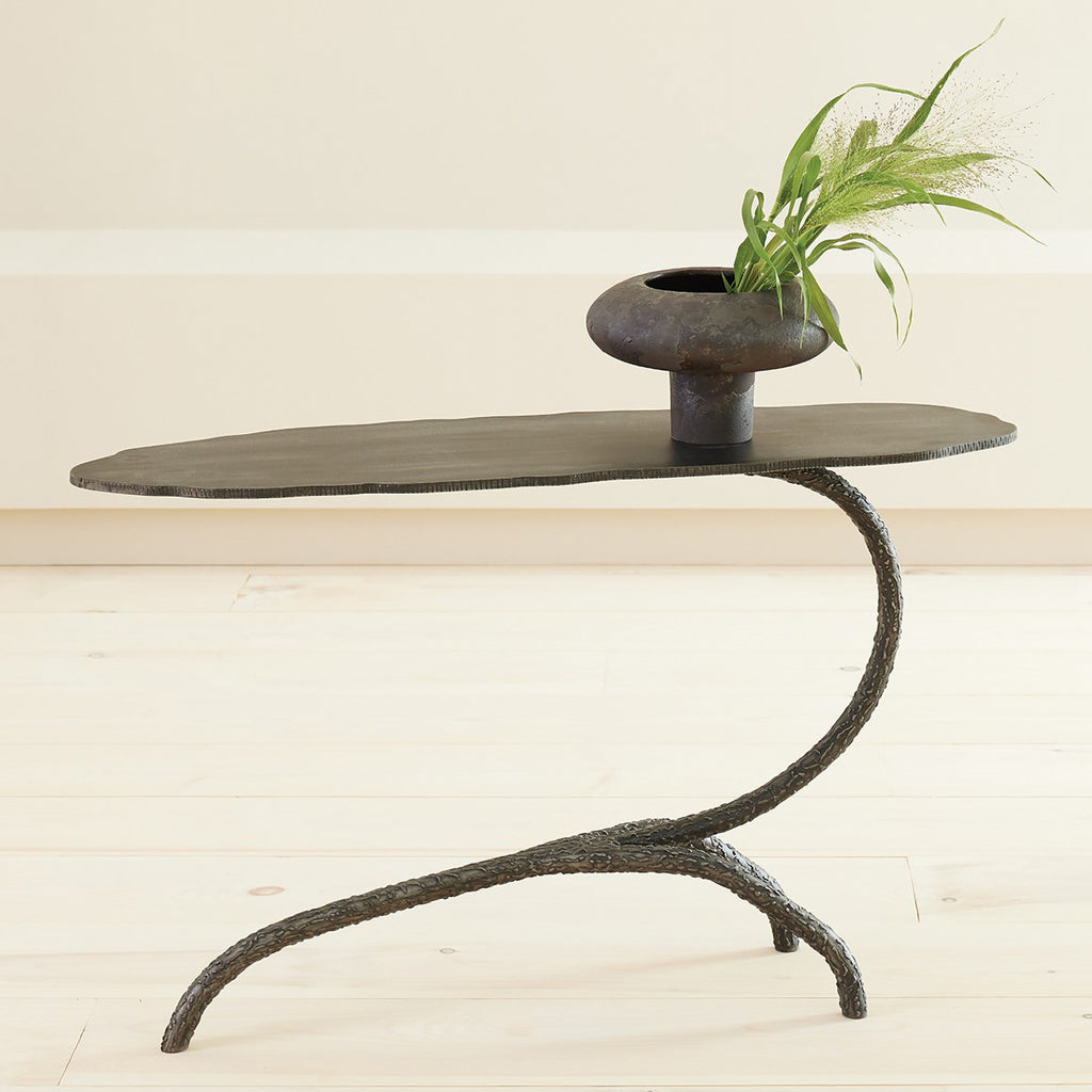 As though harvested from the metallic forest of Ernst Grulers imagination, the new Forest Blossom collection is inspired by the raw beauty of nature. The fluid organic iron legs support an iron cloud-like shaped table top in this whimsical cantilever-shaped side table. With an industrial-chic-minimalism vibe, the side table brings a sophisticated nature-inspired aesthetic to your space while offering technical excellence and attention to detail.
