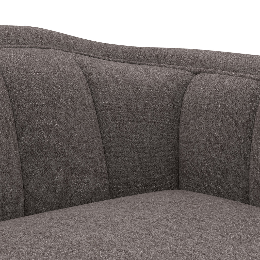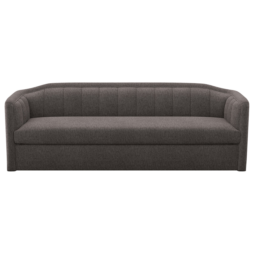 Introduce lavish comfort to any space with this contemporary sofa. Upholstered in alaska greige performance fabric with vertical tufting on the interior. Completed with a wooden frame and base. Performance fabric is moisture repellent, durable and easy to clean.