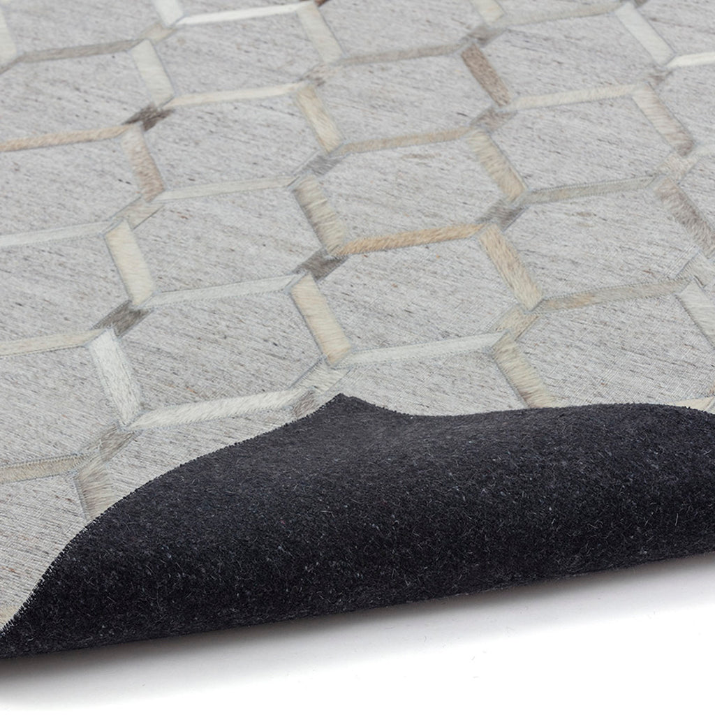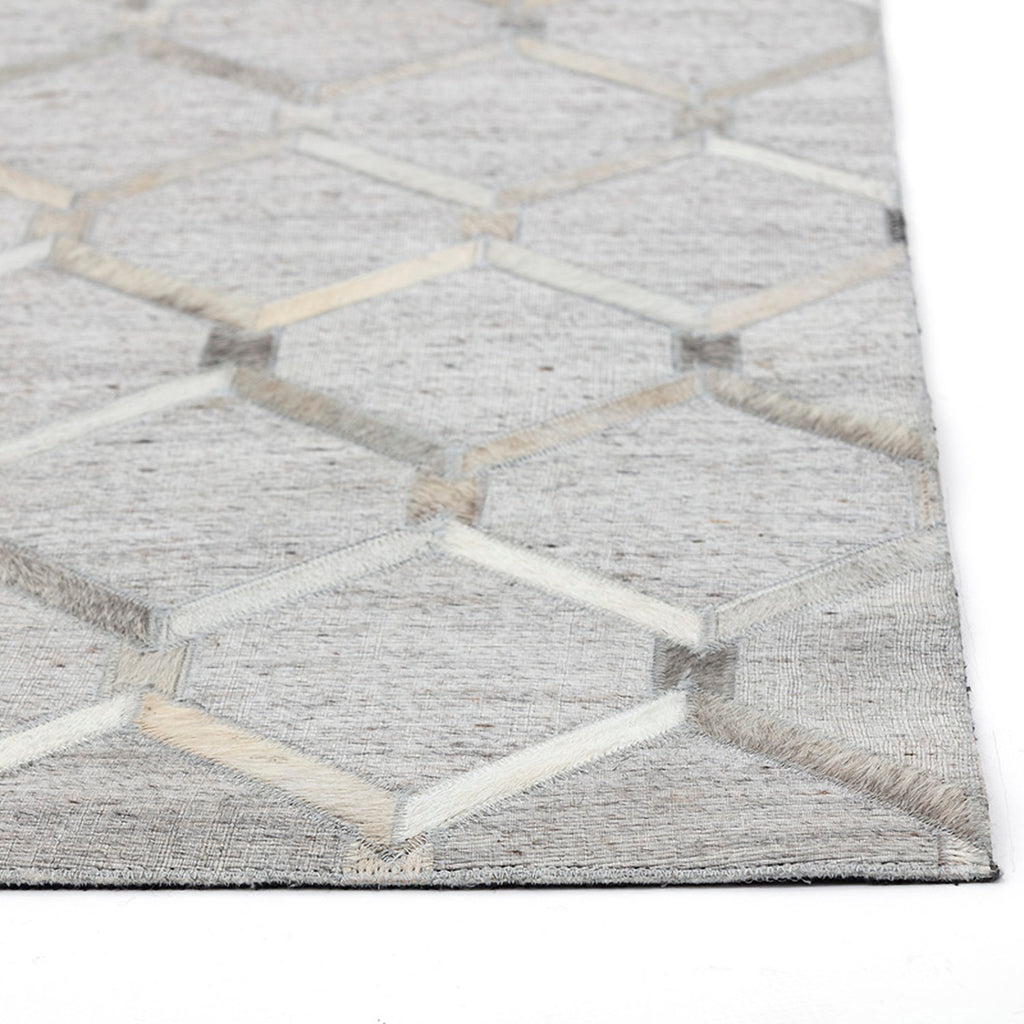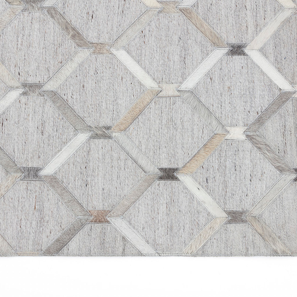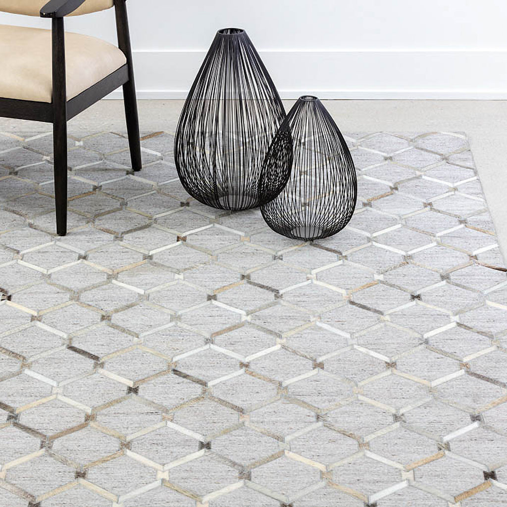 Introduce a lively pattern to any space with this stunning handcrafted rug. Features grey tones crafted from a blend of viscose and cowhide leather.