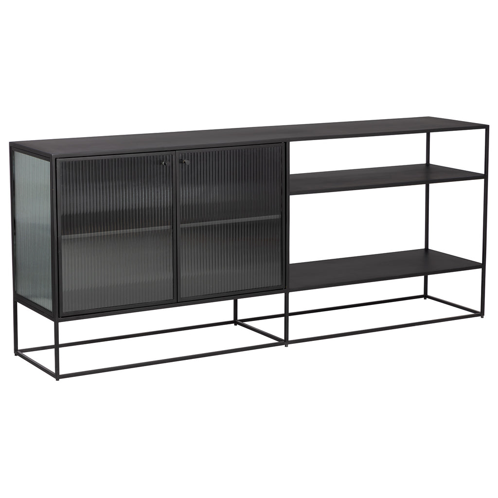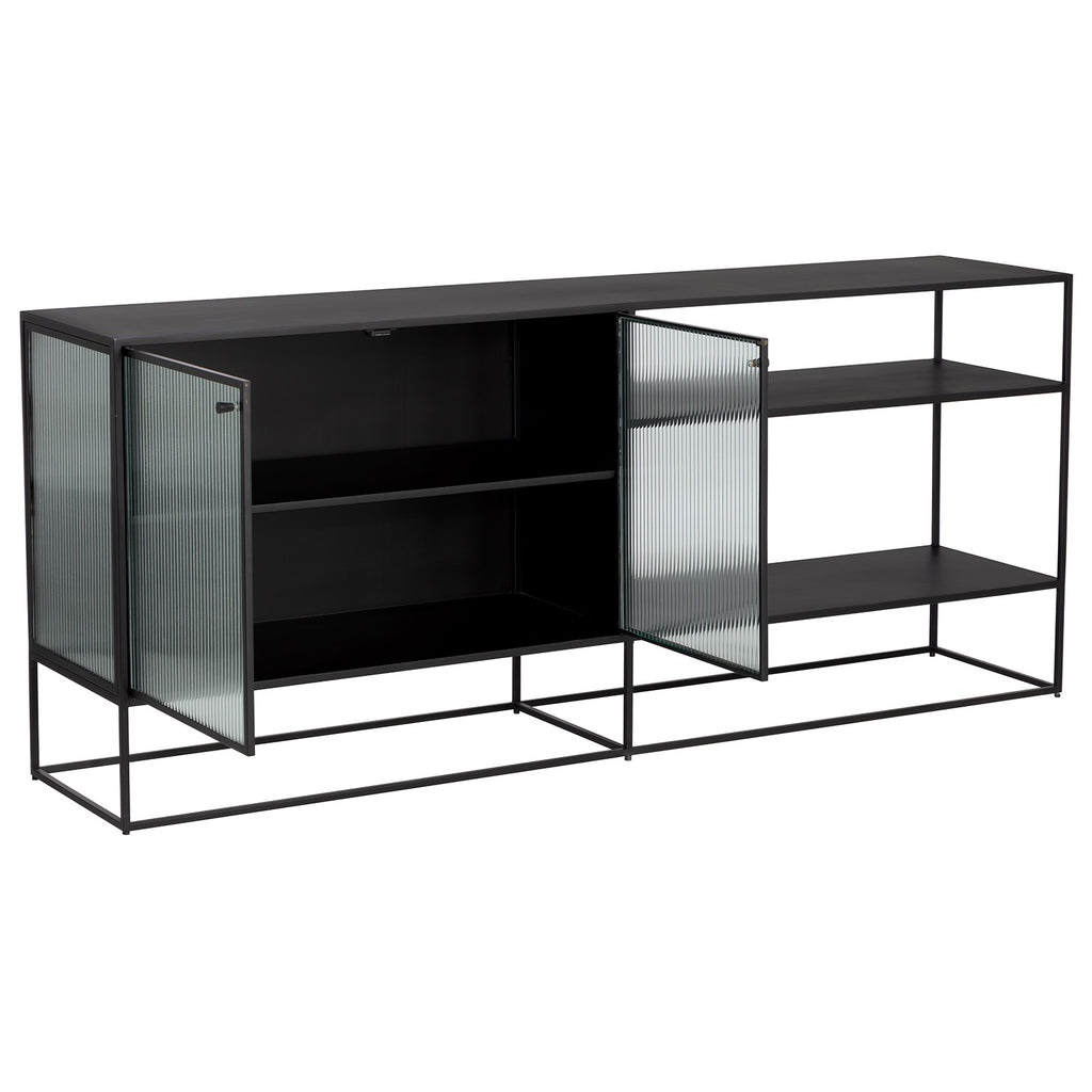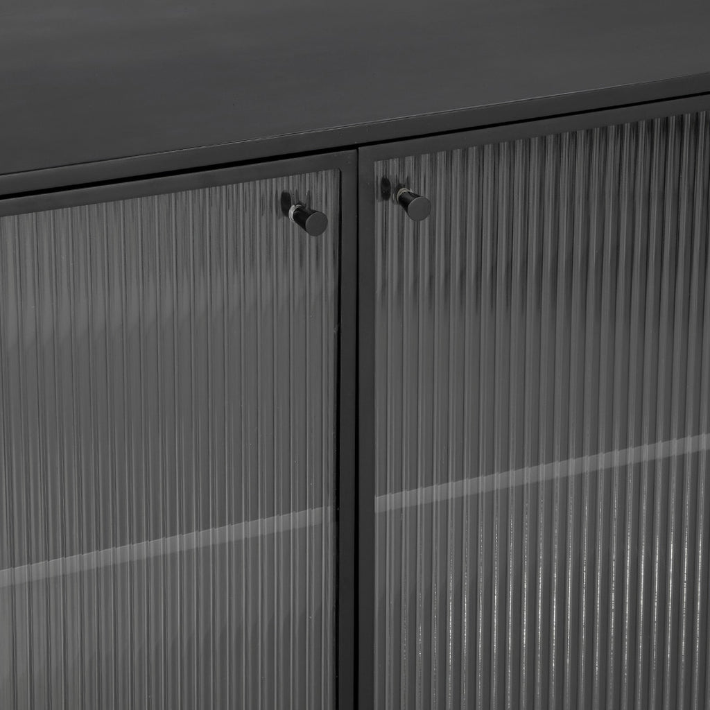Inspired by mid-century modern designs, this large sideboard evokes a timeless and minimalist style. Crafted with a matte black iron frame and features fluted glass doors. Also available in a small size.