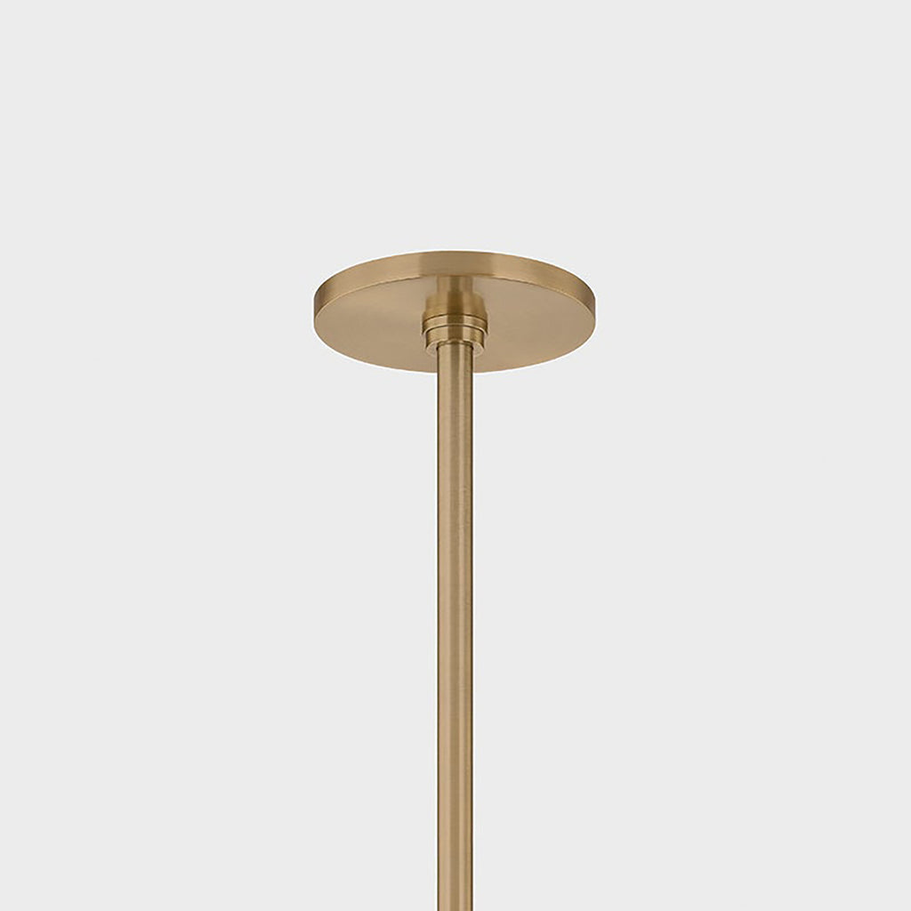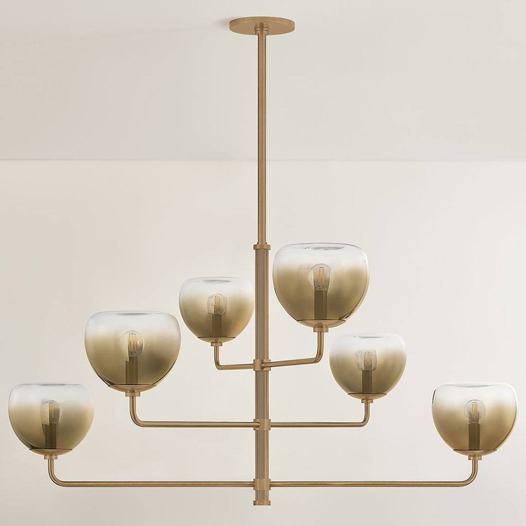 Drawing on both modern and classical vocabularies, the Troy Lighting August family pairs thin linear design lines with soft rounded forms. The directional metalwork introduces a layered geometry that guides the eye to distinctive dished glass orbs. The drama lies in the details, from the brass ombre-plated glass to the vertically fluted stem. August is available with 1, 4, or 6 lights and a Patina Brass finish.