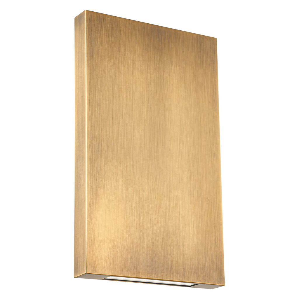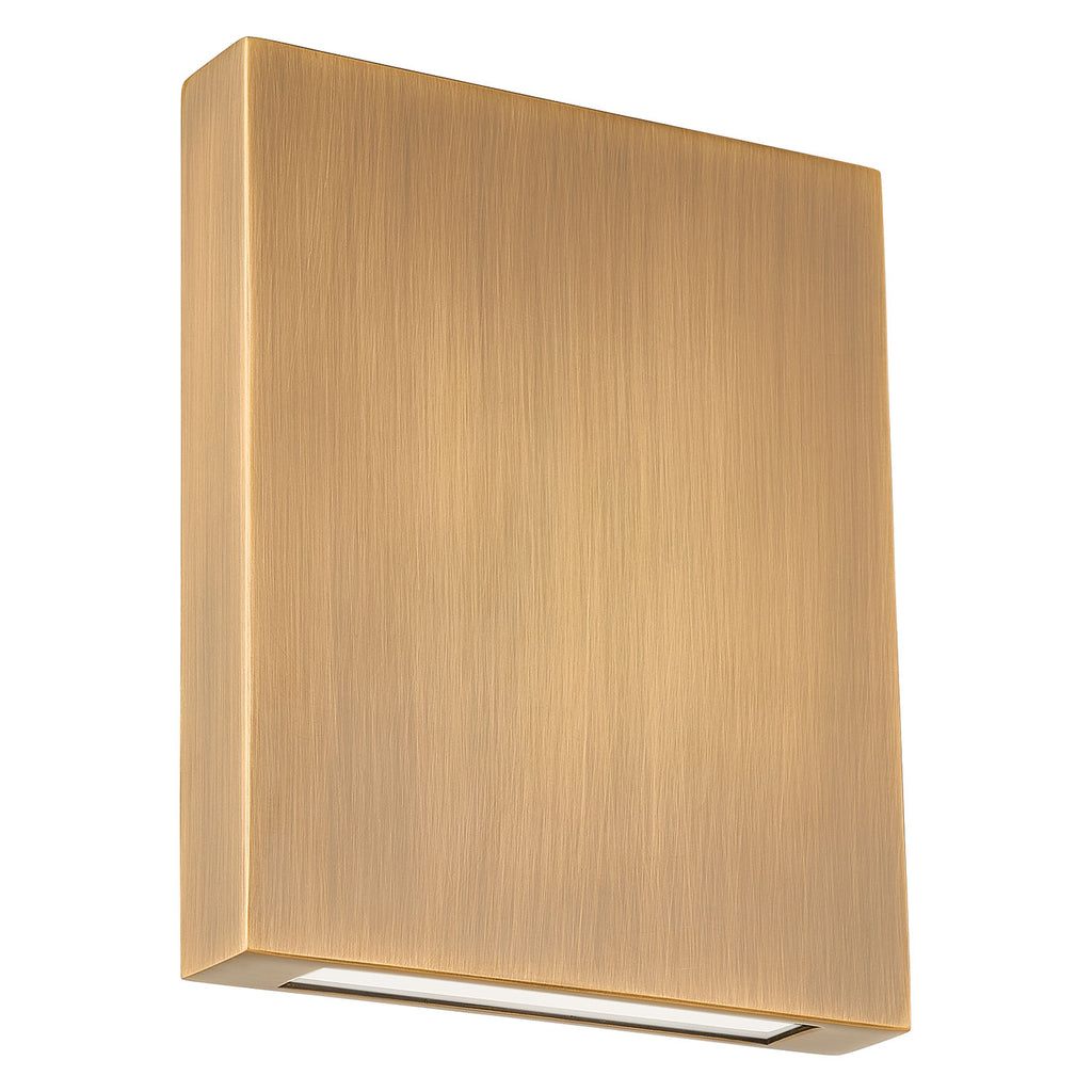 Casual, sophisticated, and little bit curious, express yourself with eclectic, artisan-made lighting by Troy. The beautiful Patina Brass finish elevates this straightforward, rectangular silhouette. The Troy Thayne exterior wall sconce's modern architectural design features an etched "spread" lens that evenly distributes the light from the LED bulb. The slim profile makes this outdoor sconce extremely usable in a variety of exteriors.