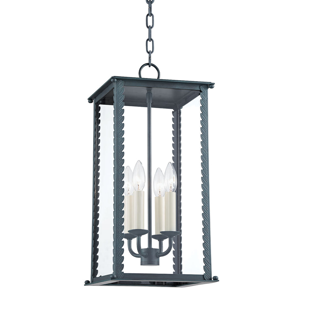 Casual, sophisticated, and little bit curious, express yourself with eclectic, artisan-made lighting by Troy. Let's take this outside, shall we? Troy lighting offers versatile outdoor lighting for doors, patios, or any space that needs extra illumination. The Troy Zuma exterior lantern embraces its surroundings, taking cues from the natural world to inform its captivating silhouette. This candelabra style cage light features a delicate leaf detail climbing up the edges, revealing demure finials on each corner. Clear glass allows you to admire the candlestick lights clearly. Available in French iron or verdigris finish. Available as a one, two, or three-light wall sconce, and pendant in two sizes.