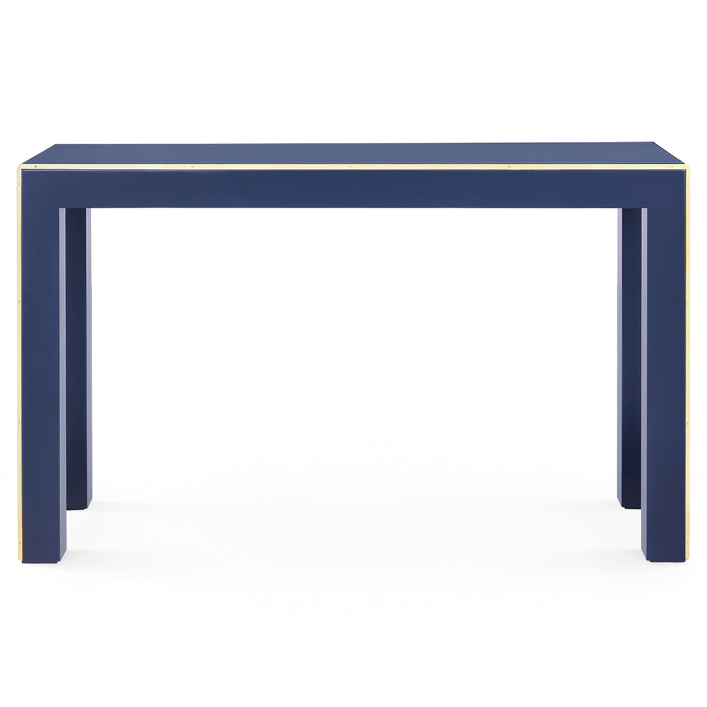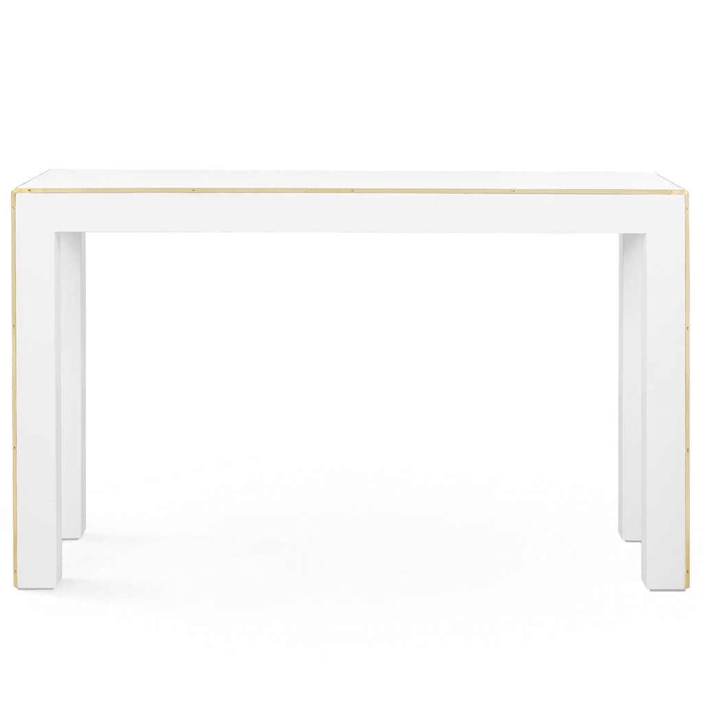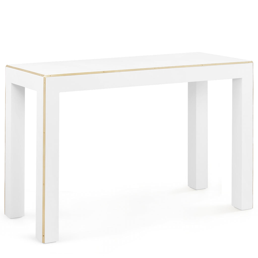 Crafted by skilled artisans, the Melissa Console epitomizes contemporary sophistication with its clean lines and sleek angles. Made from burl wood and accented by inset borders of brushed brass with decorative set screws, this piece exudes boldness and refinement. Versatile enough to complement various decor schemes, it adds a touch of luxury to any space, perfect for showcasing prized art pieces, lighting fixtures, or antiques.