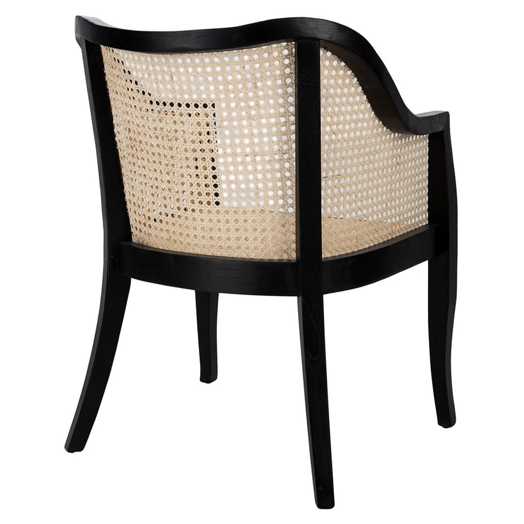 Defined by its extraordinary craftsmanship, this contemporary dining chair instantly upgrades any dining room. Designed to showcase its beautiful black cane, the gentle curves of its black elm wood and chic black upholstery make it an investment.