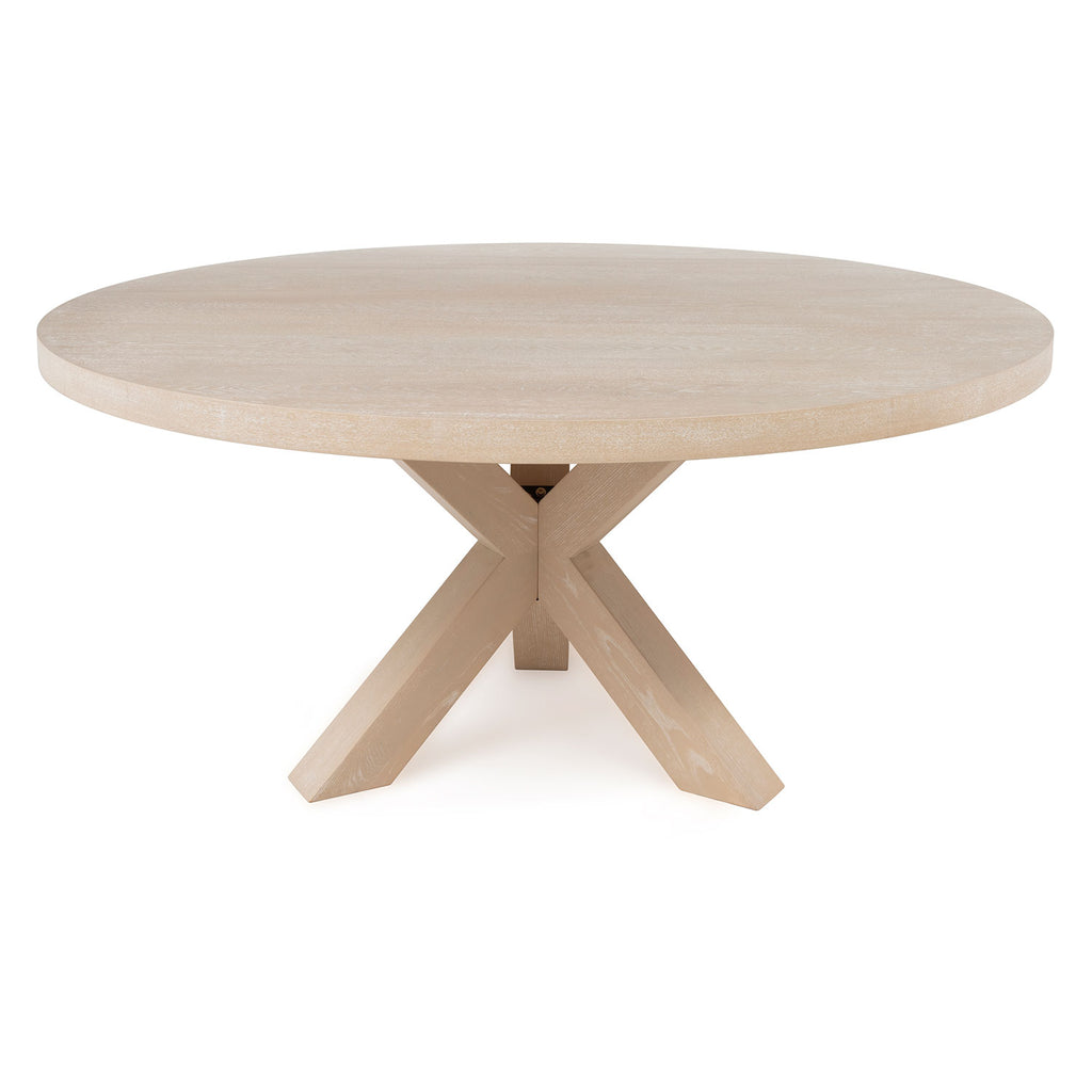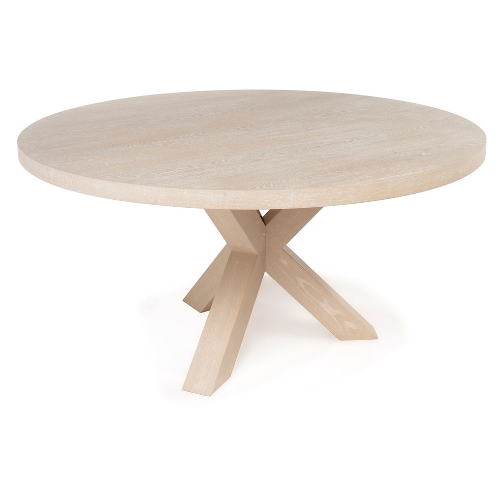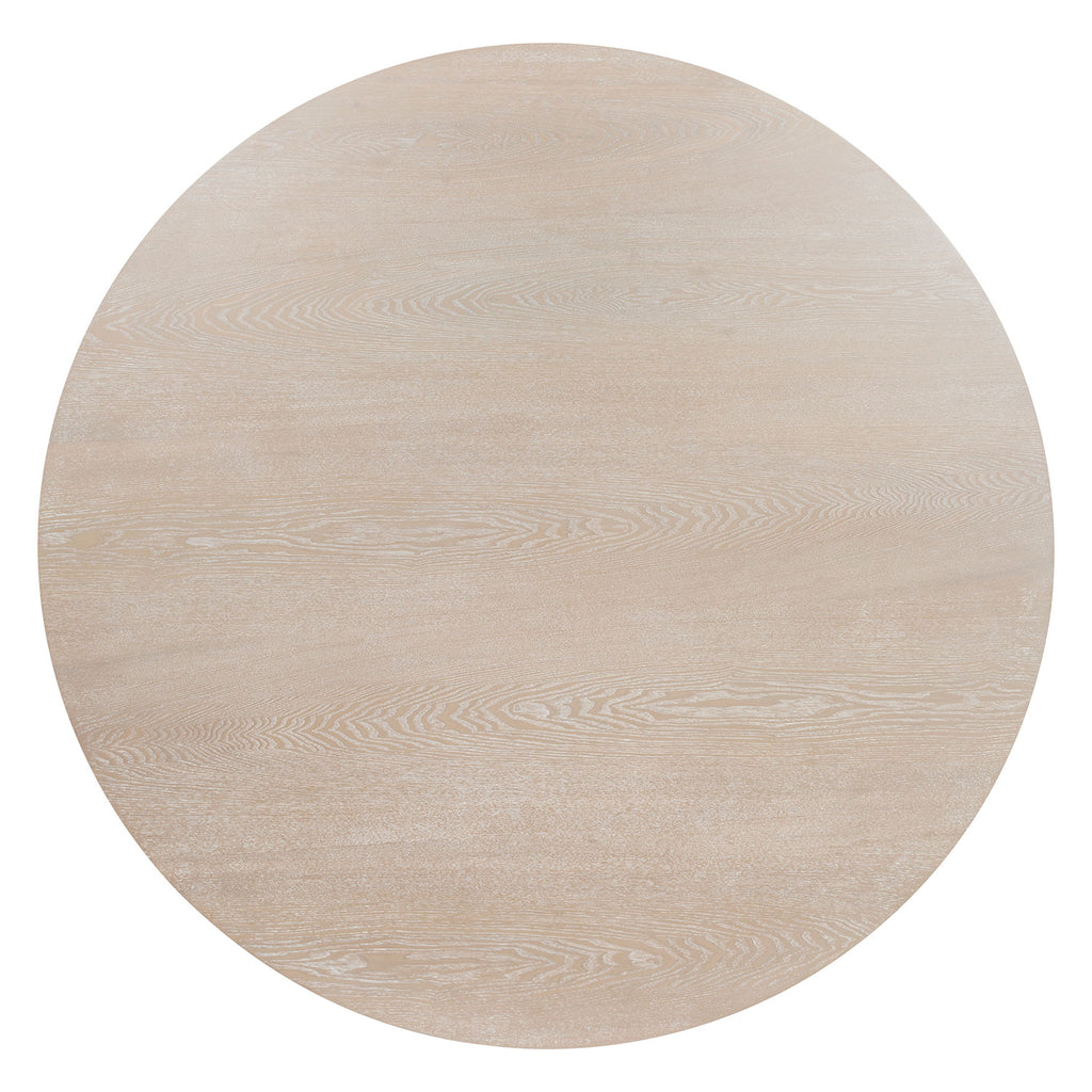 Enjoy the company of guests in elegant style with this Worlds Away dining table. Impressively chic, this minimalist design captivates with bold allure. A simple round top sets the stage, while a gorgeous base delights with effortless sophistication. The Worlds Away Greer round dining table makes the most of its modern, minimalist shape. The tripod wood base offers a handsome, sturdy foundation, and the natural cerused, matte white or smoke grey finish amplifies striking, textured oak grain. Greer comfortably seats six.