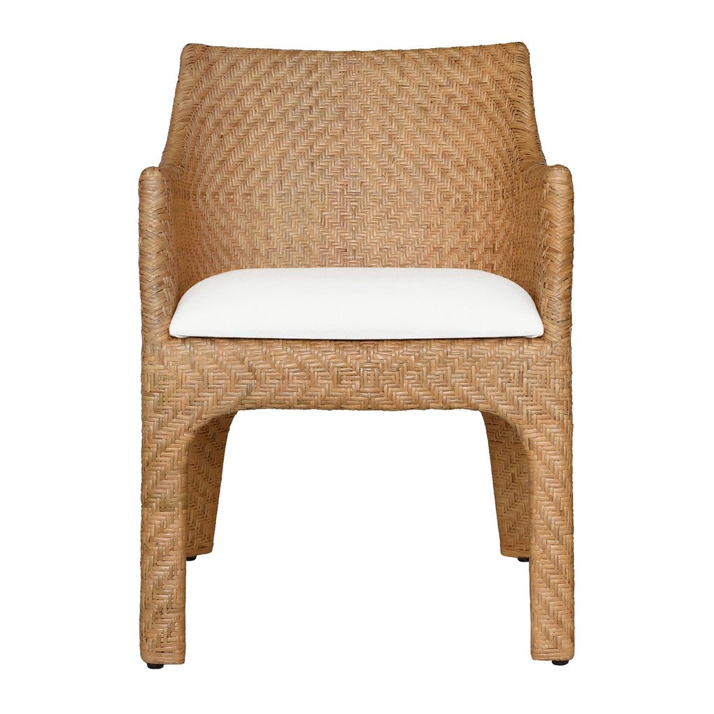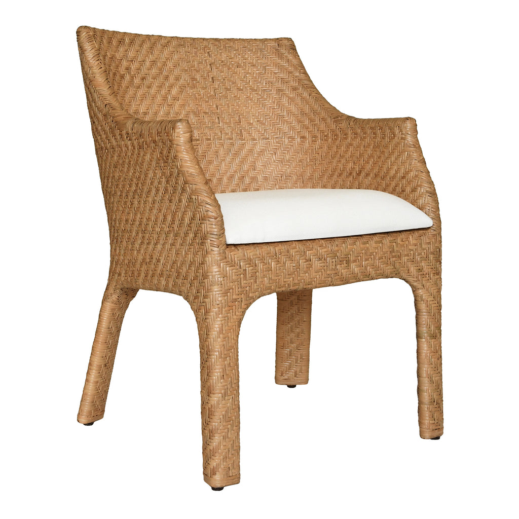 Basketweave rattan wrapped dining chair with ivory linen cushion