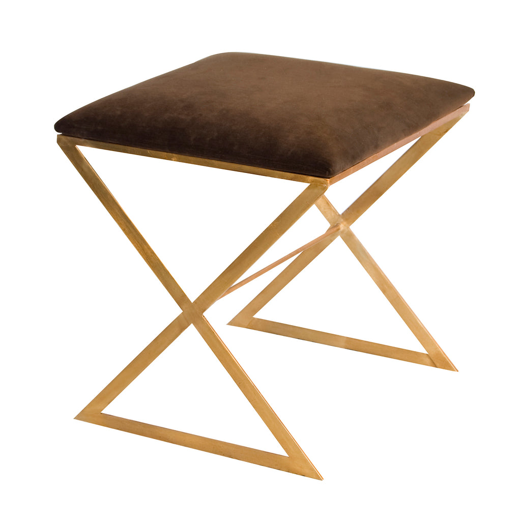 X marks the spot for style! The Worlds Away X Side stool, with its metal frame and cushion in lux velvet upholstery is a treasure waiting to be discovered. Perfect for occasional seating tucked neatly under your console, you'll find this little gem has many applications making it a treasured addition to any room in your home.