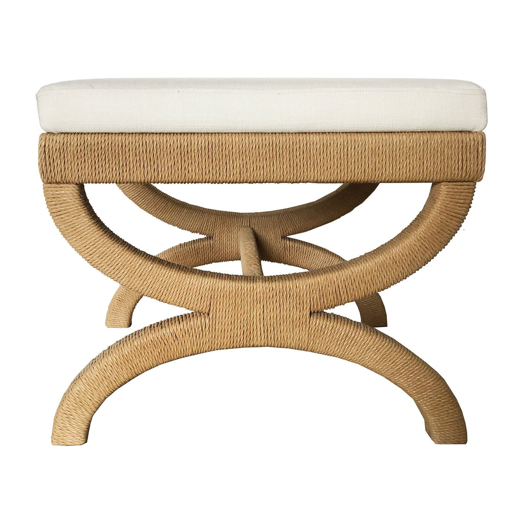 Worlds Away invites guests to sit in your living room or dining room with elevated modernity. Simple, sleek lines give this seat a transitional statement, while a cushioned seat offers ample comfort. The Neoclassical Worlds Away Xanadu stool blends a thoughtful combination of organic and modern design elements. Handcrafted with natural rope and topped with a structured white linen cushion, Xanadu looks great as standalone or bunched in pairs.