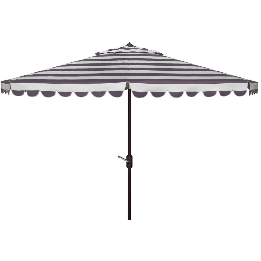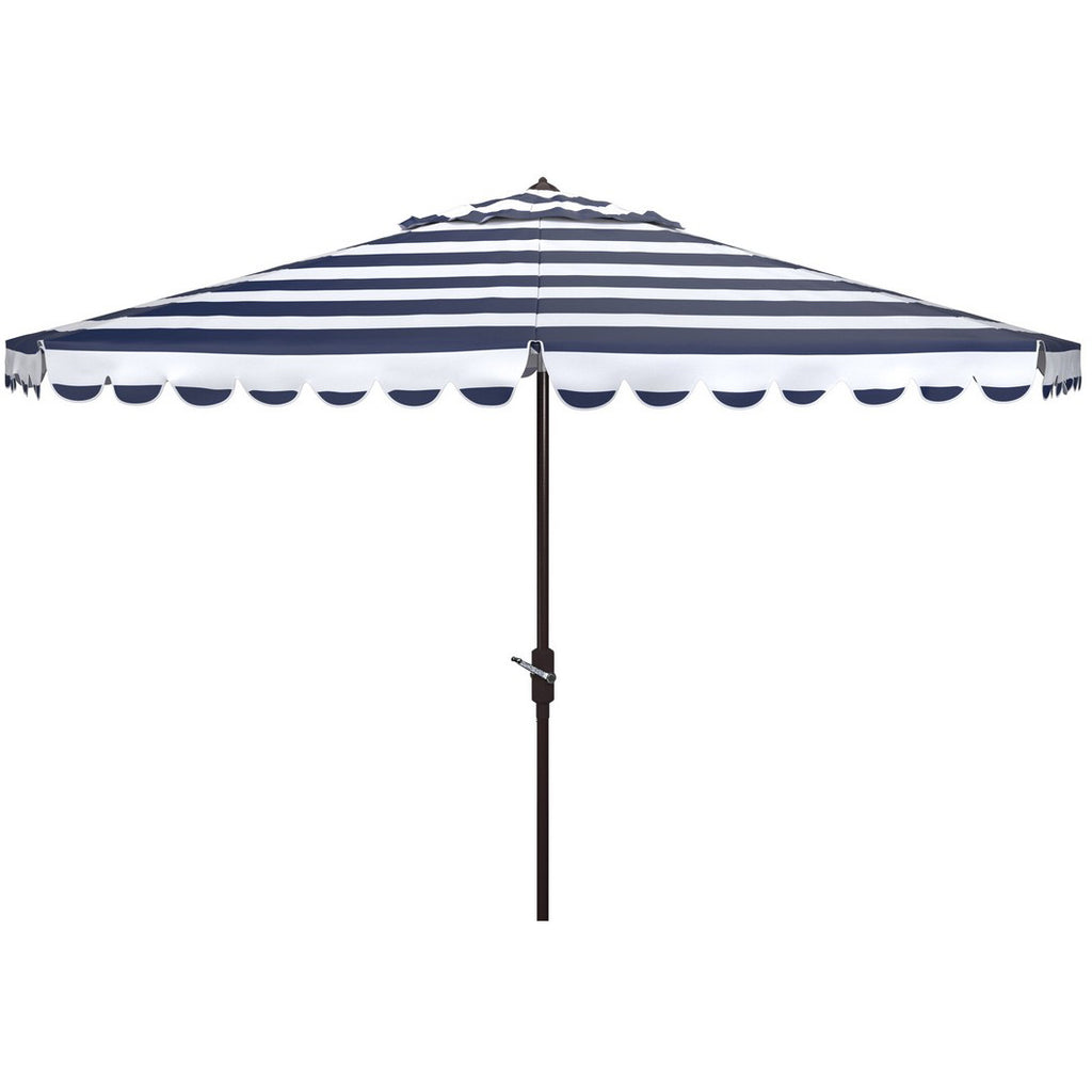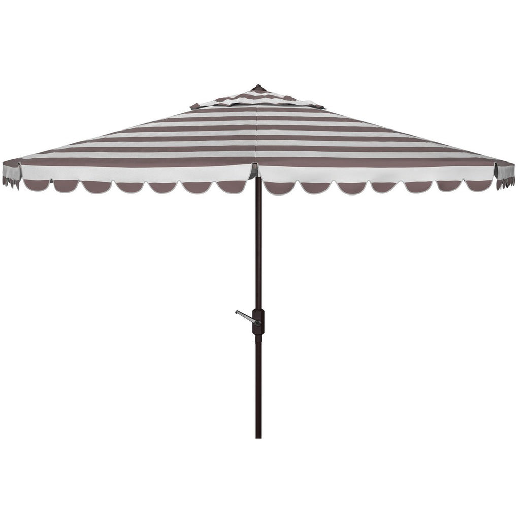 The stylish striped and scalloped detail of this chic Allegra Umbrella fashionably elevates the art of sunbathing. Allegra's round polyester canopy protects you from harsh summer rays, and its aluminum post intelligently complements its neutral color palette.