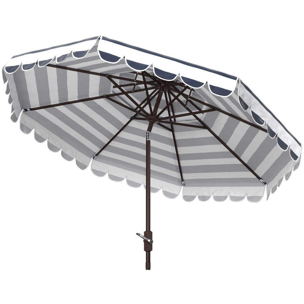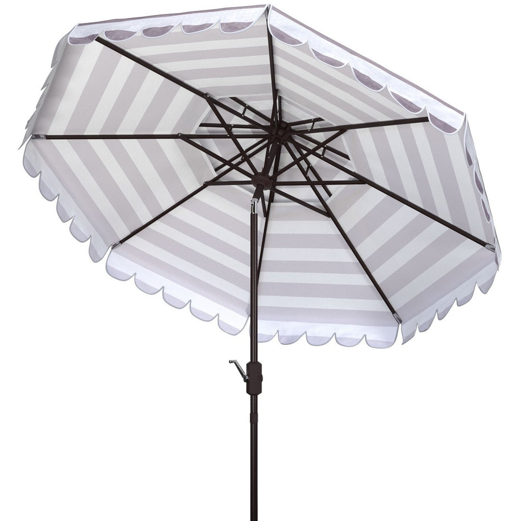 The stylish striped and scalloped detail of this chic Allegra Umbrella fashionably elevates the art of sunbathing. Allegra's round double top canopy protects you from harsh summer rays, and its aluminum post intelligently complements its neutral color palette.