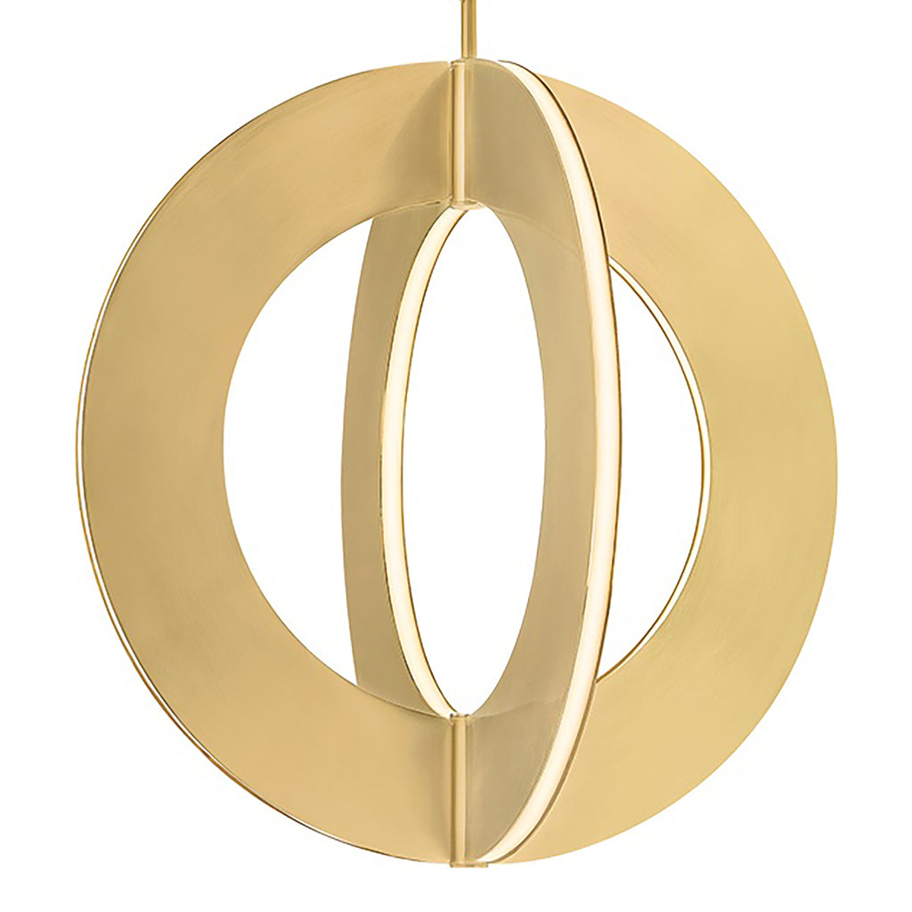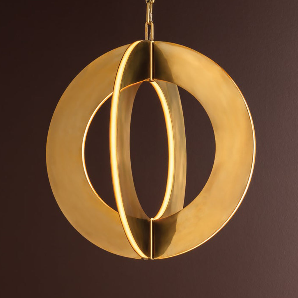 A large-scale statement pendant, Corbett Lighting Samos is designed to elevate a space with sculptural, geometric elegance. Featuring an innovative use of LED light, this pendant’s visual impact is enhanced by its functionality. The rounded, ring-like shade is finished in Vintage Brass, creating a dynamic surface that draws the eye while reflecting light. Available in two sizes, Samos adds a bold accent to kitchens or dining areas.