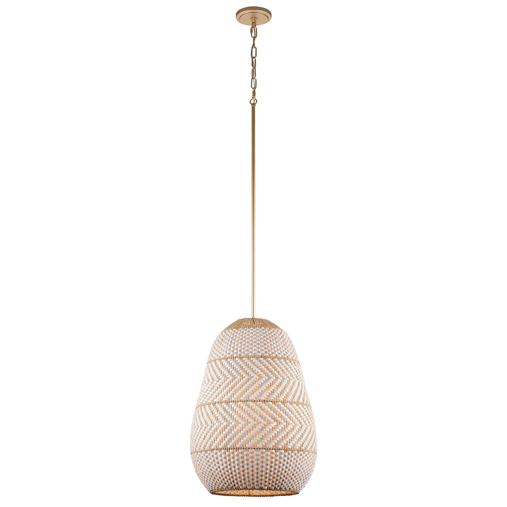 The Zanzibar Collection is an embodiment of laid-back luxe and thoughtful simplicity. By marrying the natural textures of natural rattan with white lanyard, the fixture introduces a striking two-tone color palette and soft gold finish that instantly brings comfort and style to a living space Handcrafted with precision, the intricate weave introduces texture and depth to your décor. Whether suspended over a breakfast nook or in pairs above a kitchen island, the Zanzibar Pendant exudes an earthy, elegant charm that brings an artisanal touch to your decor.