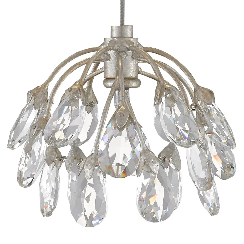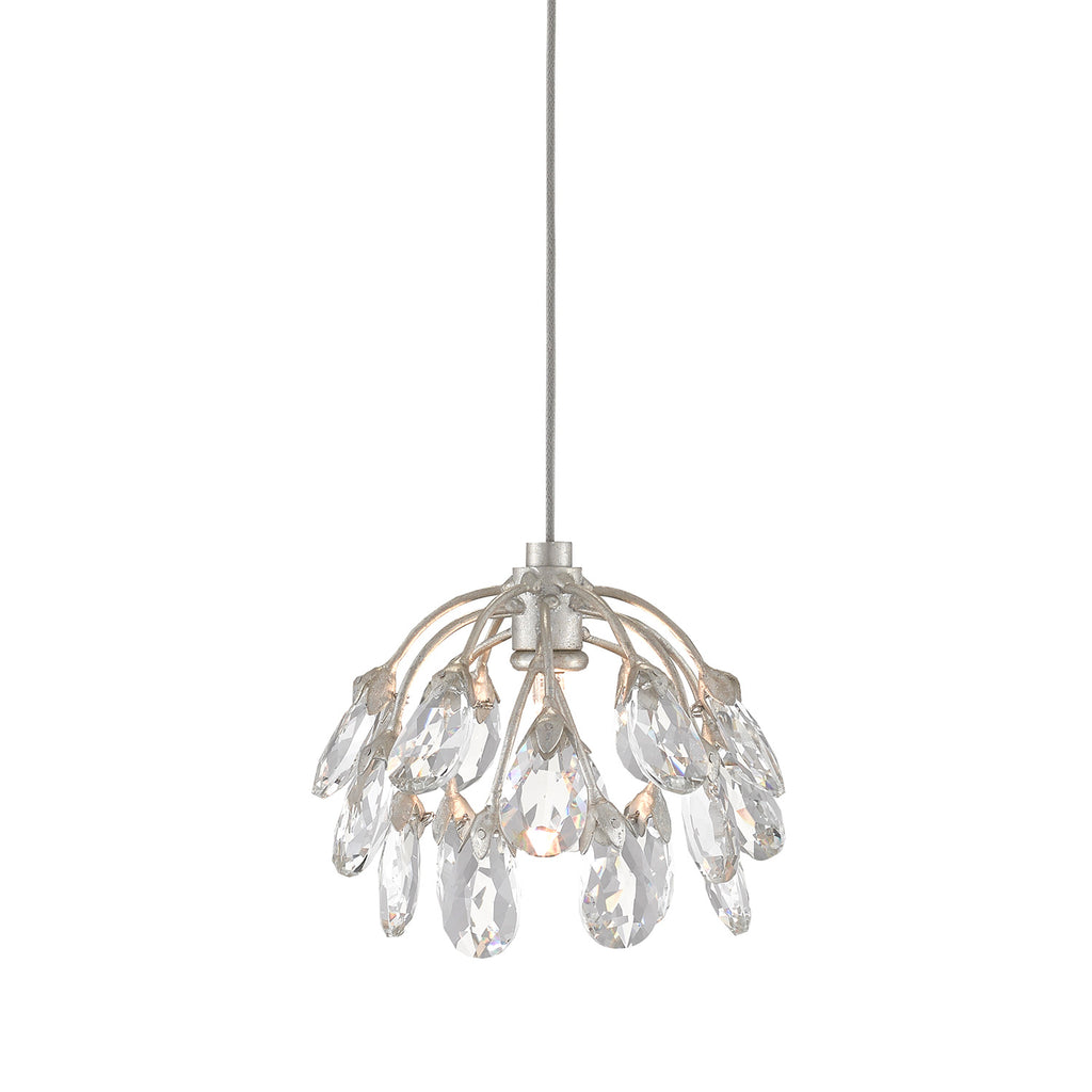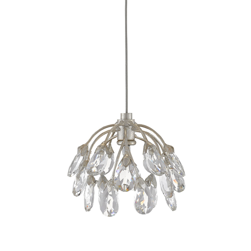 The Currey & Company Crystal Bud 1-Light Multi-Drop pendant dangles a flower made of delicate faceted crystals from its canopy to make the shade effervescent and graceful. The silver pendant is luminous in its mix of painted silver and contemporary silver leaf finishes.