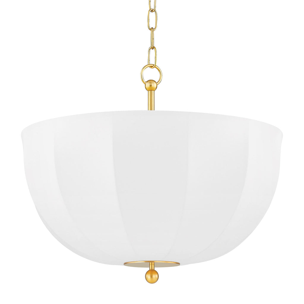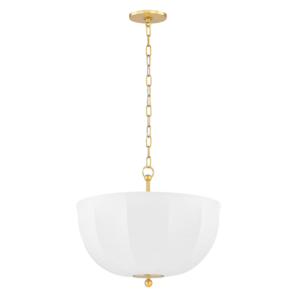High-quality and exceedingly creative, Mitzi delivers a semi-nostalgic classic lighting collection with streamlined contemporary elements that instantly upgrade your space. Suspended from the ceiling, pendant lighting by Mitzi offers extra light expression exactly where you need it with a functional high-design feel. Inspired by mid-century Danish design, Meshelle features a whimsical umbrella shape. Light flows both through the shade and softly glows around it. Aged Brass accents on the finials, chain detailing, and the floor lamp's pull chain, add a sophisticated touch to this usable fixture.