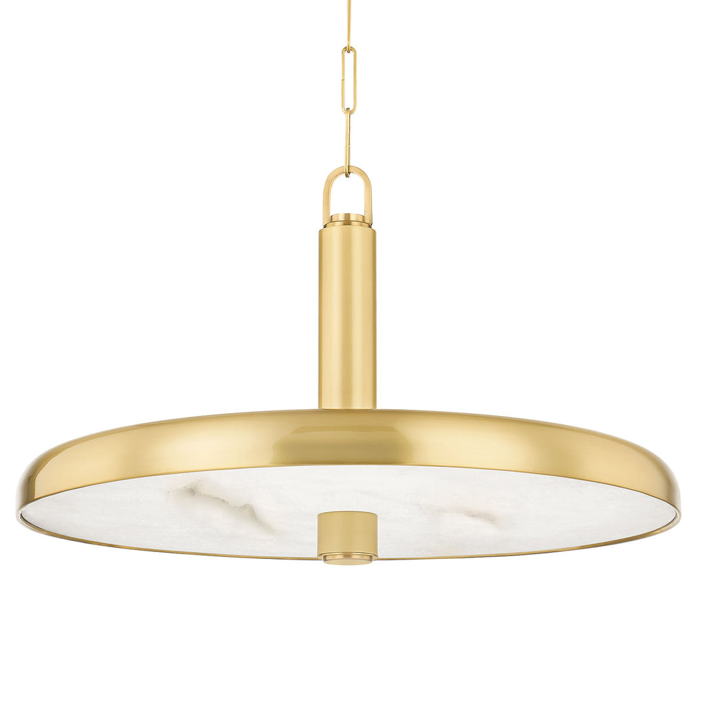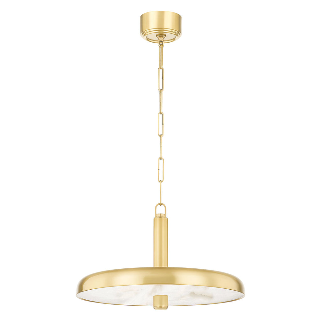 Renowned for built-to-last quality with a timeless feel, Hudson Valley offers a modern lighting collection with elegant touches, recalling vintage inspiration. Shed a little light on your space with modern pendants by Hudson Valley Lighting, which suspend from the ceiling of your dining room or kitchen island, functioning as both practical and elegant. Sleek and sophisticated, this modern take on a dome pendant light features an alabaster lens underneath a smooth, elegant Aged Brass shade. This streamlined design is just as chic alone as it is in multiples.