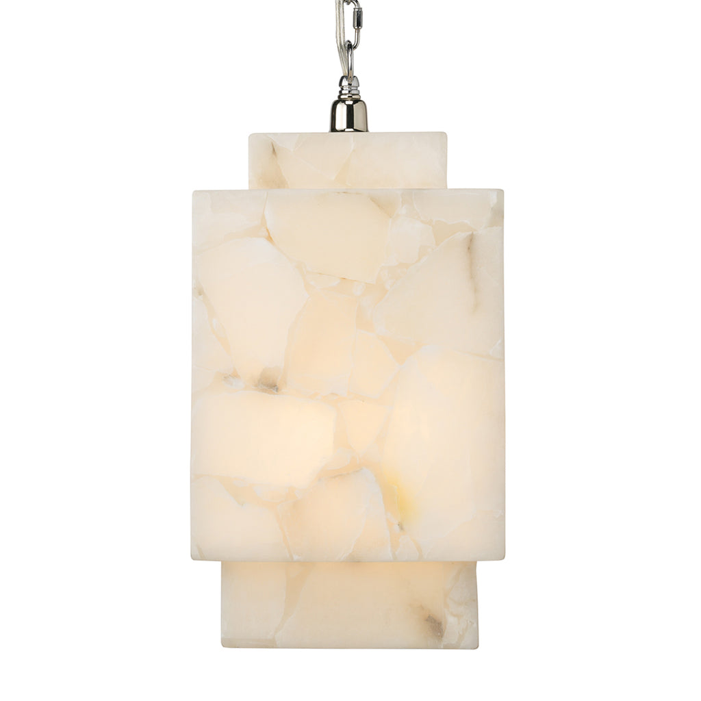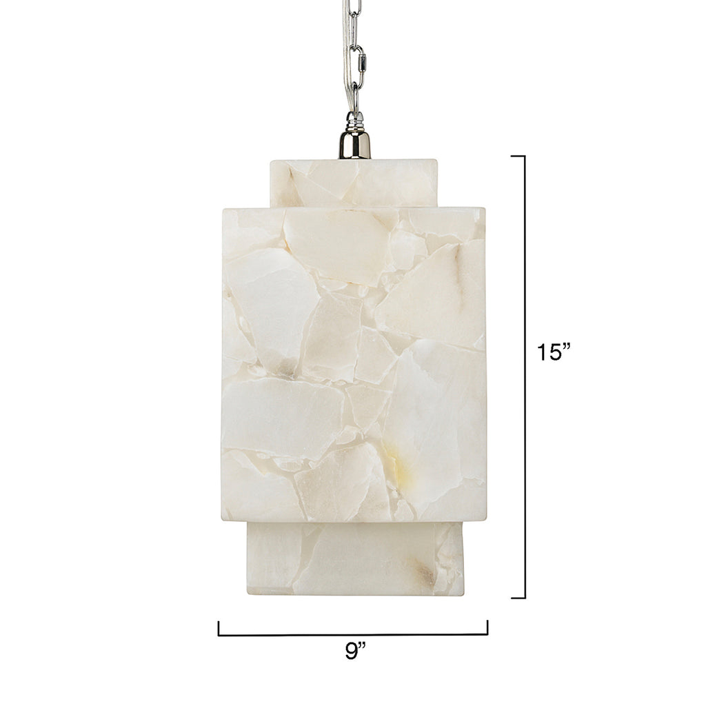 This unique alabaster pendant has strong cubic lines that float in it's alabaster white glow.