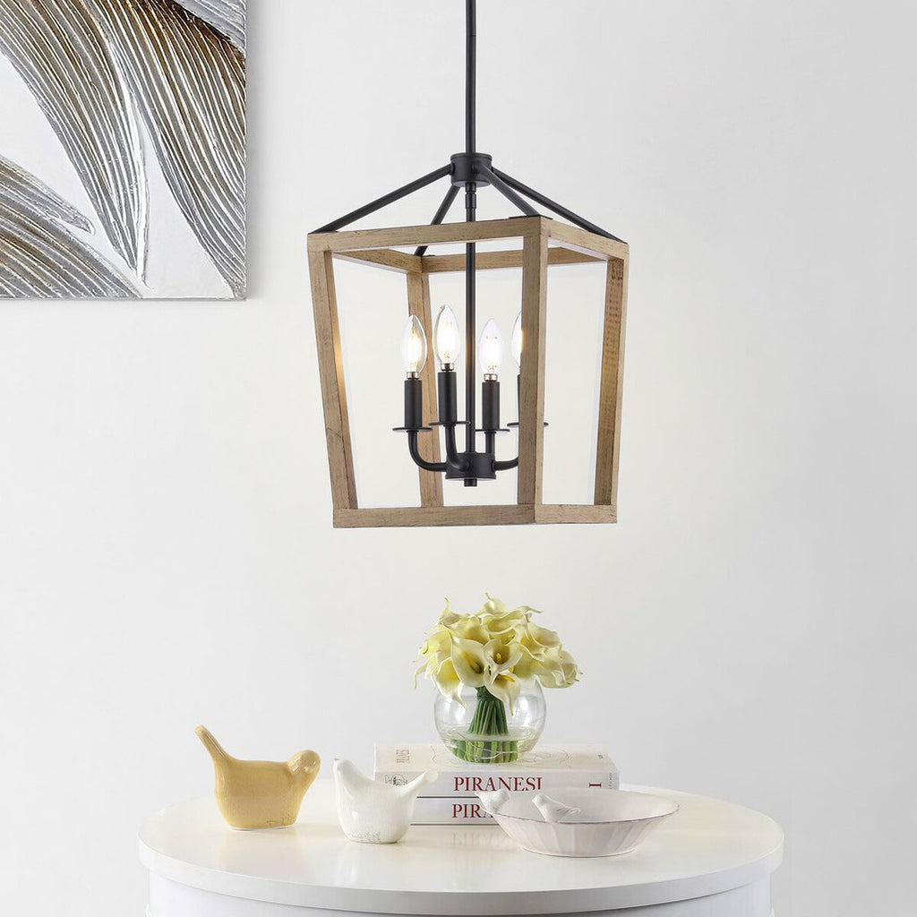 An enchanting chateau in the South of France inspired this rustic chic pendant light. Designed to give warmth and character to any living room or dining room, its 4-light interior candelabra is framed by finely crafted black metal and wood finishes.