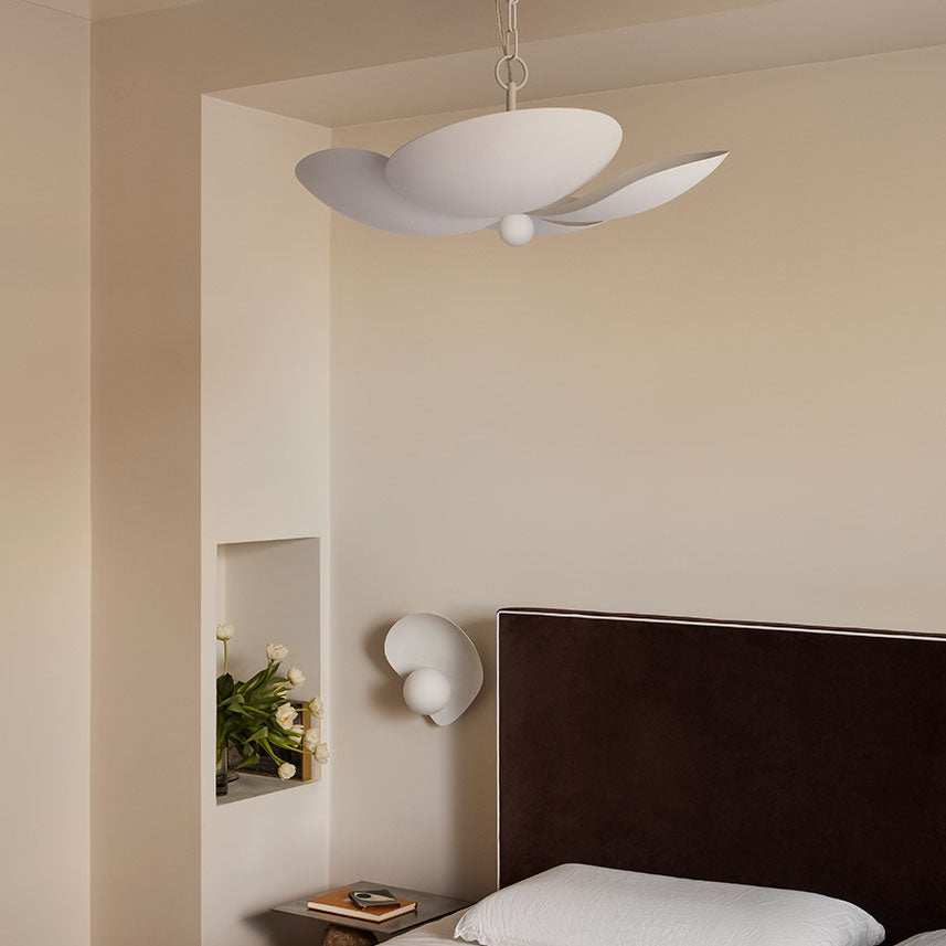High-quality and exceedingly creative, Mitzi delivers a semi-nostalgic classic lighting collection with streamlined contemporary elements that instantly upgrade your space. Suspended from the ceiling, pendant lighting by Mitzi offers extra light expression exactly where you need it with a functional high-design feel. Beautiful and botanical, Leni features a petal-shaped shade that is chic and soothing. Light fills the shade and creates uplight, and the bulb underneath provides a bright glow that reflects beautifully off the textured white shade behind it. Available as a one-light wall sconce and five-light pendant, the monochromatic, all-white finish works well with a variety of interiors.