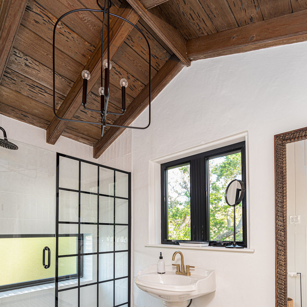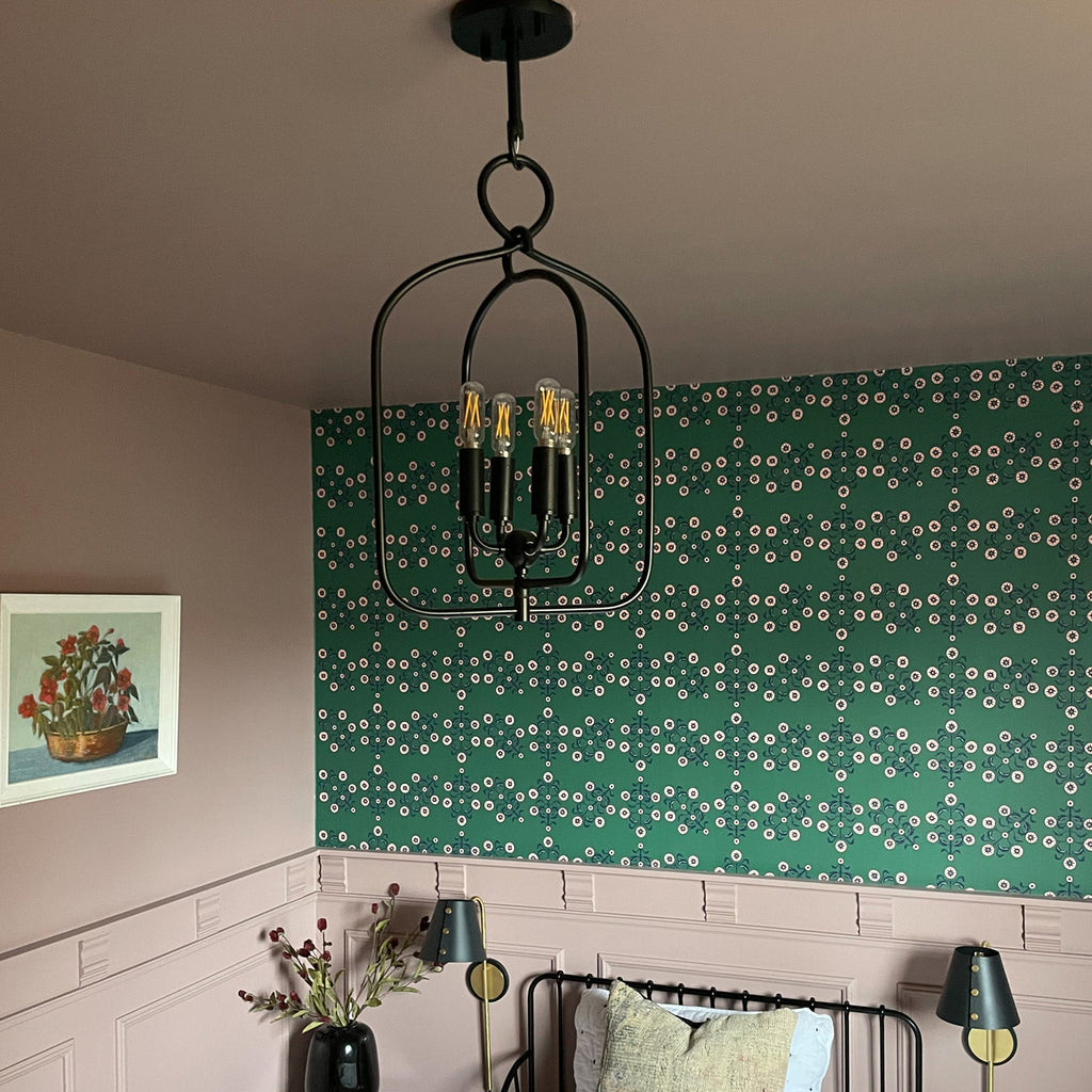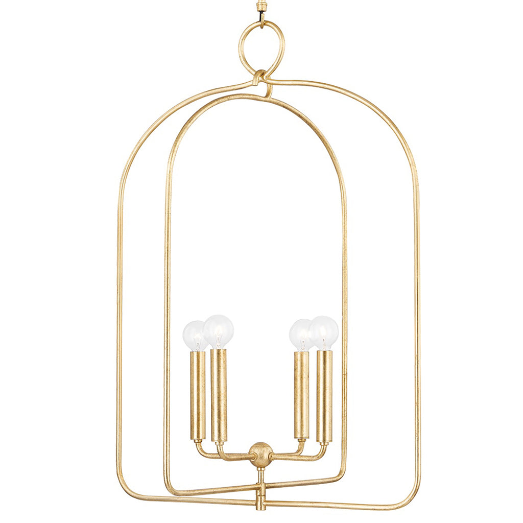 With its open, arched metal frame and gold leaf or aged iron finish, Mitzi Mallory Pendant makes a stylish statement. Clear, round bulbs atop sleek, straight candle holders create a beautiful contrasting effect. Available as a sconce, pendant or linear, each fixture hangs from a round metal loop giving the piece a feeling of motion.