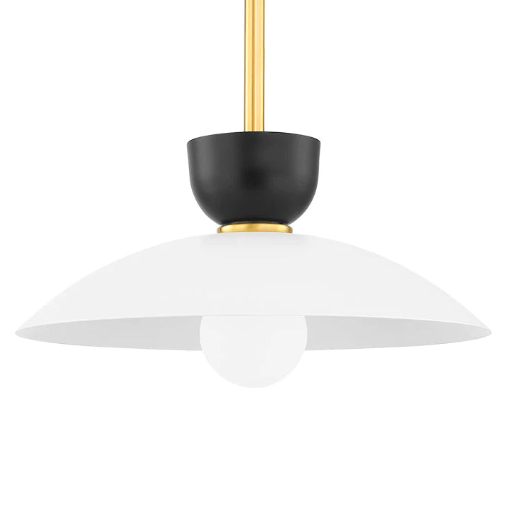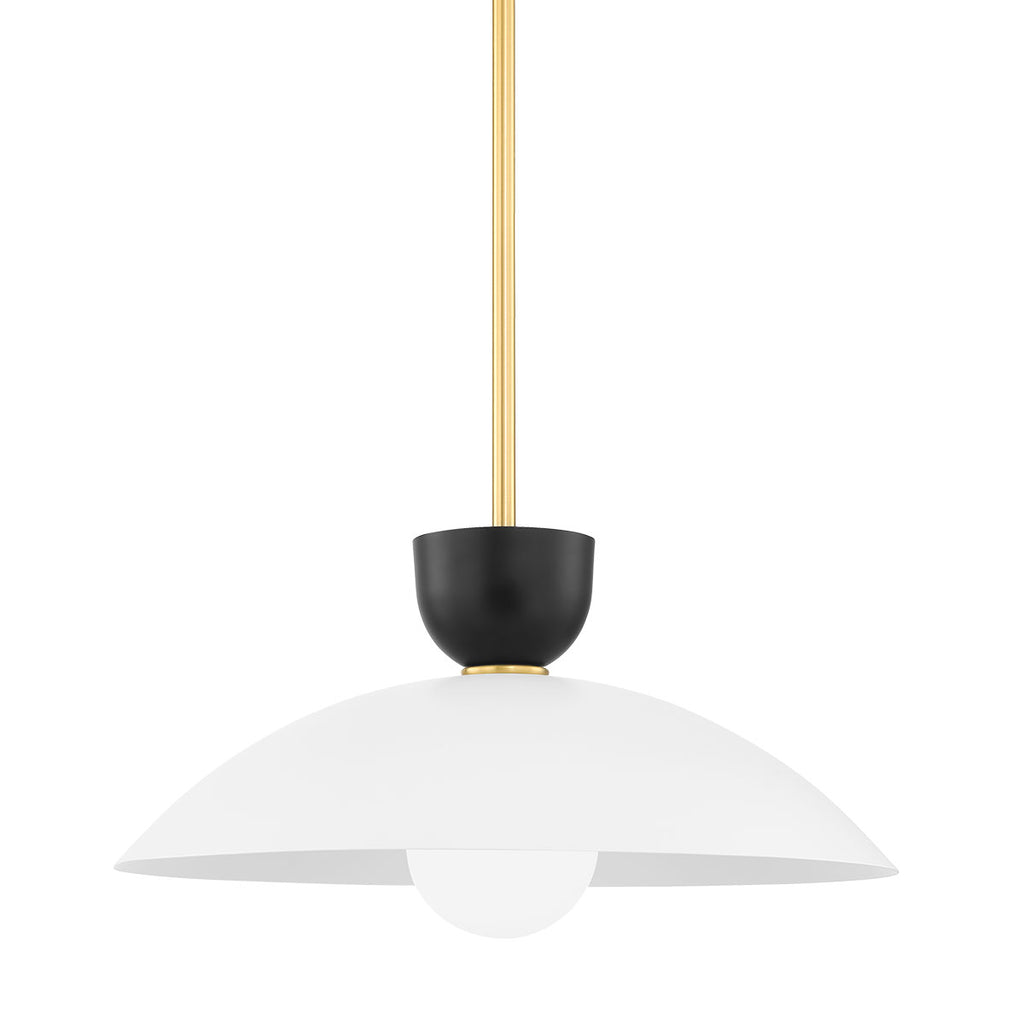 High-quality and exceedingly creative, Mitzi delivers a semi-nostalgic classic lighting collection with streamlined contemporary elements that instantly upgrade your space. Suspended from the ceiling, pendant lighting by Mitzi offers extra light expression exactly where you need it with a functional high-design feel. Like a flowering lotus, the Mitzi Whitley pendant expands outward, feeling infinite in her reach. Dueling finishes in soft black and white present a yin yang effect, anchored by a crisp metal arm in aged brass or polished nickel. Available as a pendant in two sizes and a dramatic swing arm wall sconce. Not sure where to place the wall light? Try Whitley over a reading banquet or writing desk.
