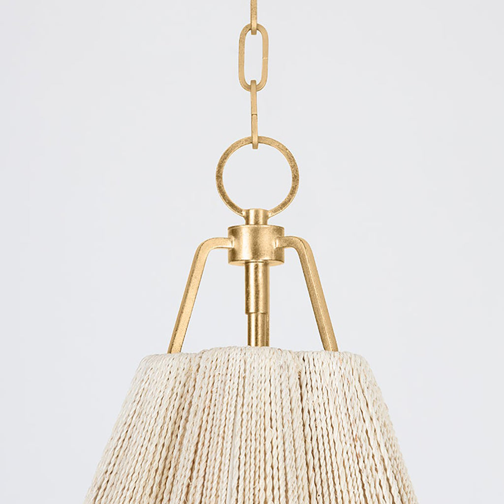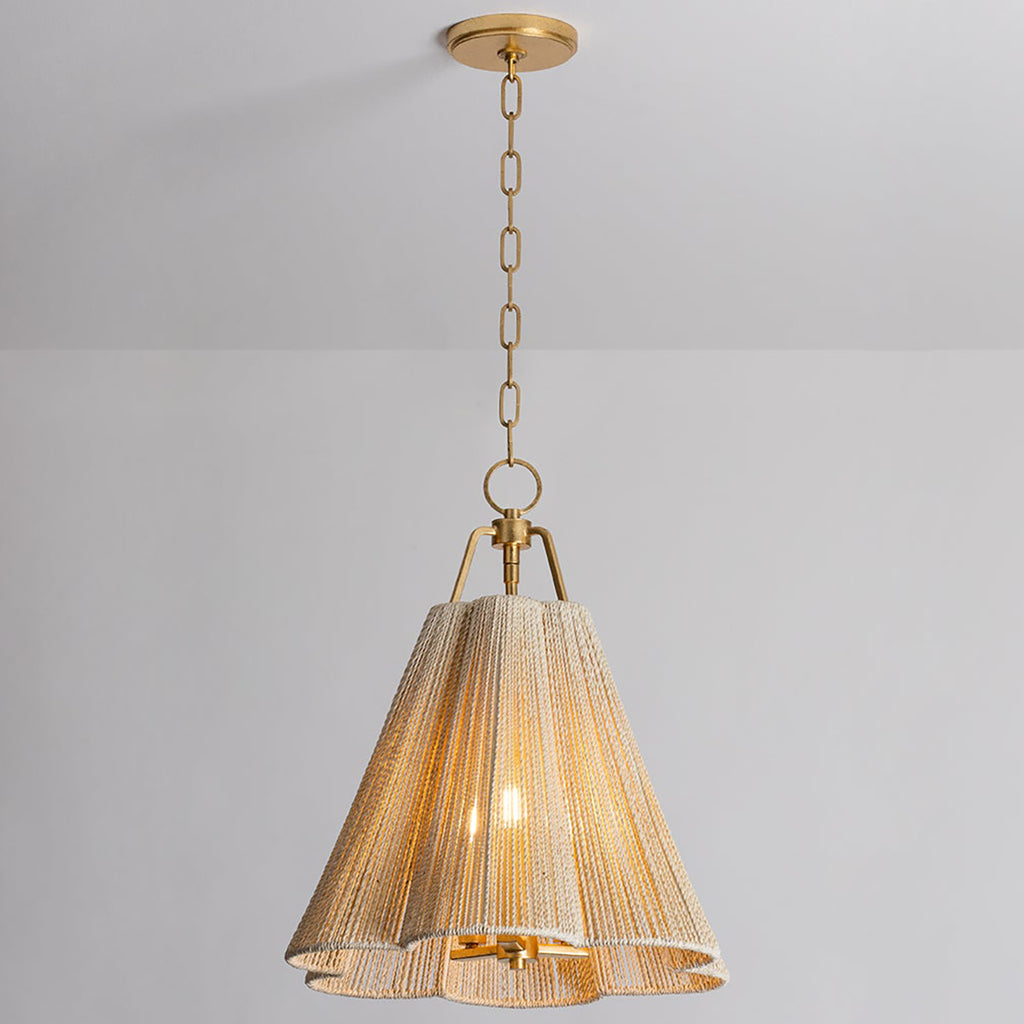 Embodying breezy sophistication, Troy Sonoma Pendant features a textural scalloped design woven from Bleached Abaca rope. The bell-shaped shade is scalloped and suspended by delicate metalwork. Available as 3 and 4-light pendants, as well as a 1-light sconce, Sonoma creates a fresh, inviting lighting experience.