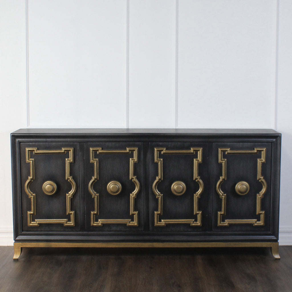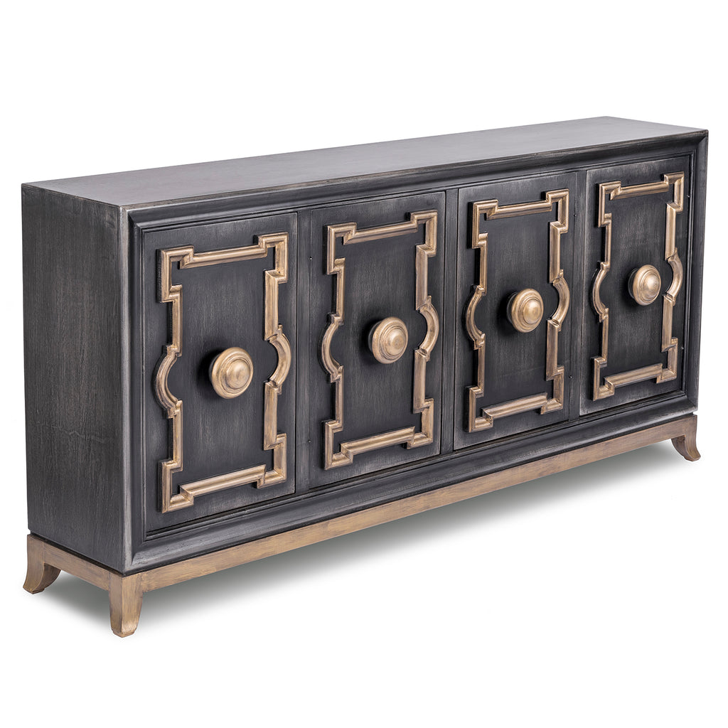 This Peninsula Home grand buffet has a contrast in the finish that demands your attention. The whimsical gold accents make this piece truly unique and traditional for any formal space.