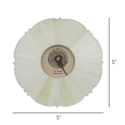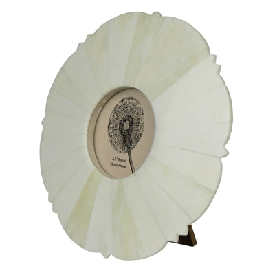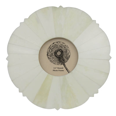 Printed photo memories have found their home in this unique picture frame. Thoughtfully crafted from natural bone, this frame is designed to fit any home's aesthetic.Holds a 2.5in photo.