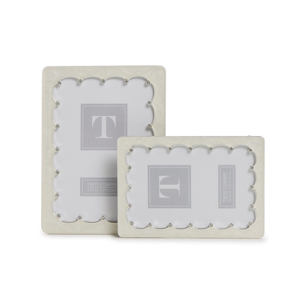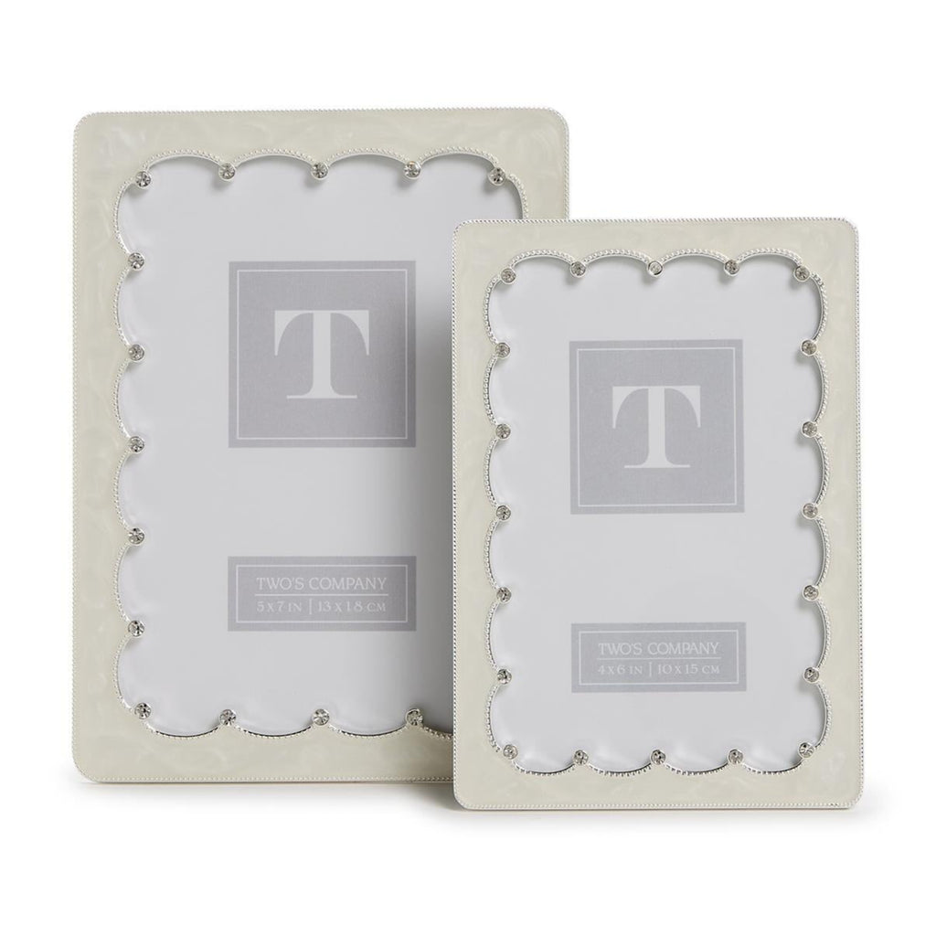 Introducing our exquisite Set of 2 Scalloped Crystal Photo Frames, a perfect blend of elegance and functionality to showcase your cherished memories. Crafted with meticulous attention to detail, these frames are designed to enhance the beauty of your photographs while adding a touch of sophistication to any space.