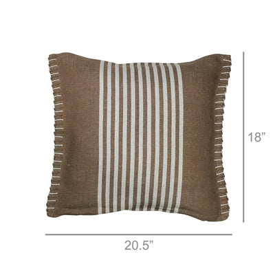 Woven of cotton and jute with a classically timeless stripe and whip-stitched side this pillow fits any style, from coastal to rural and everyplace in between. Includes polyester fiber pillow insert.