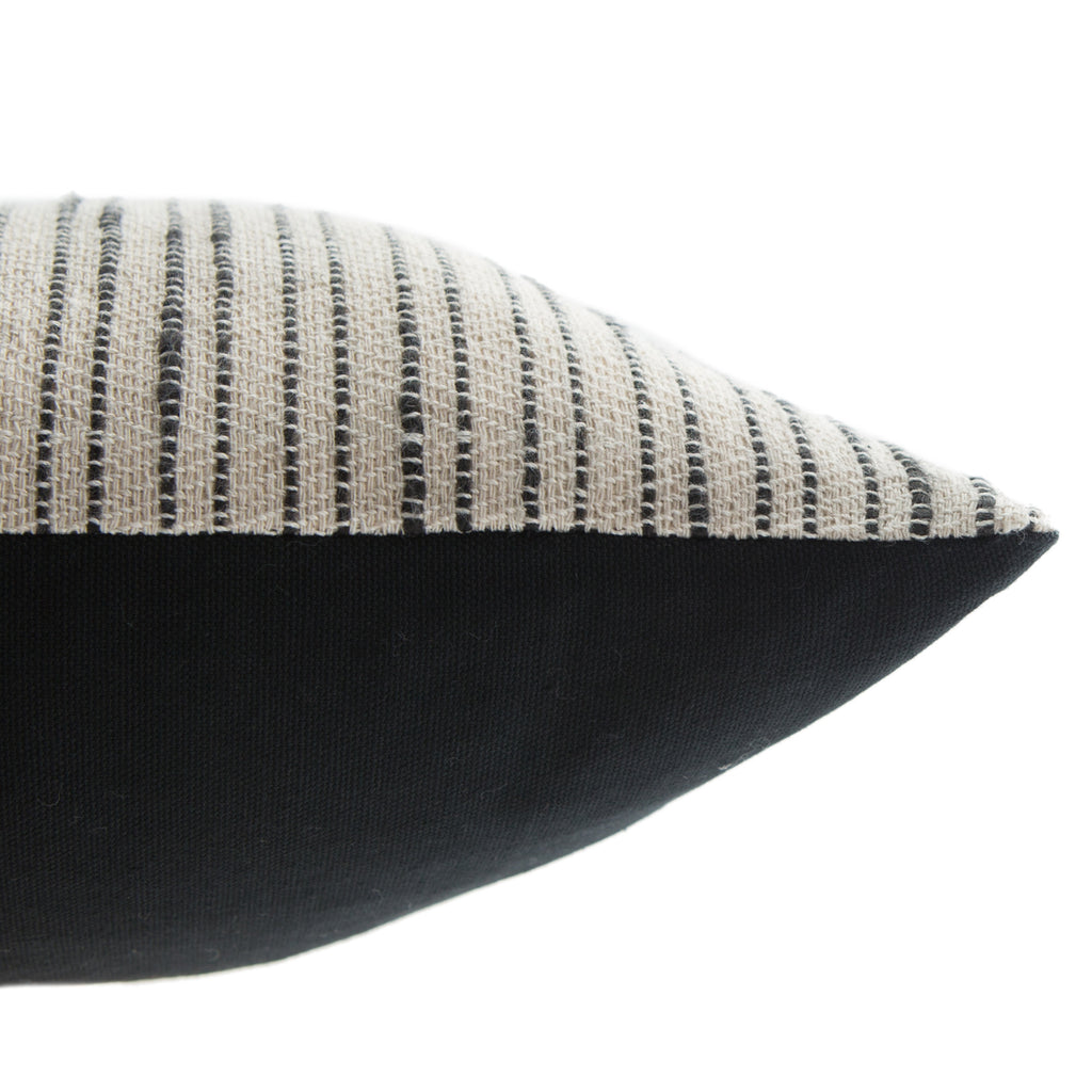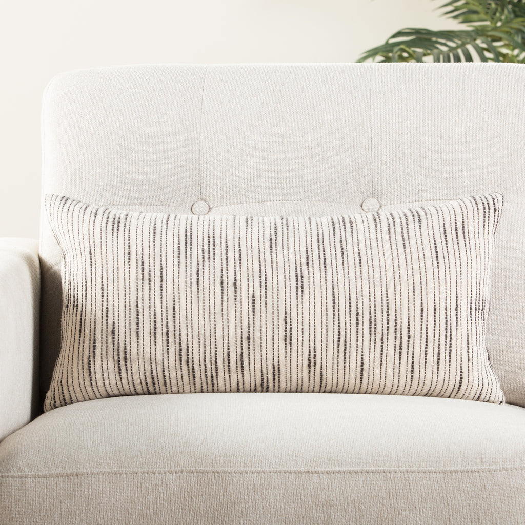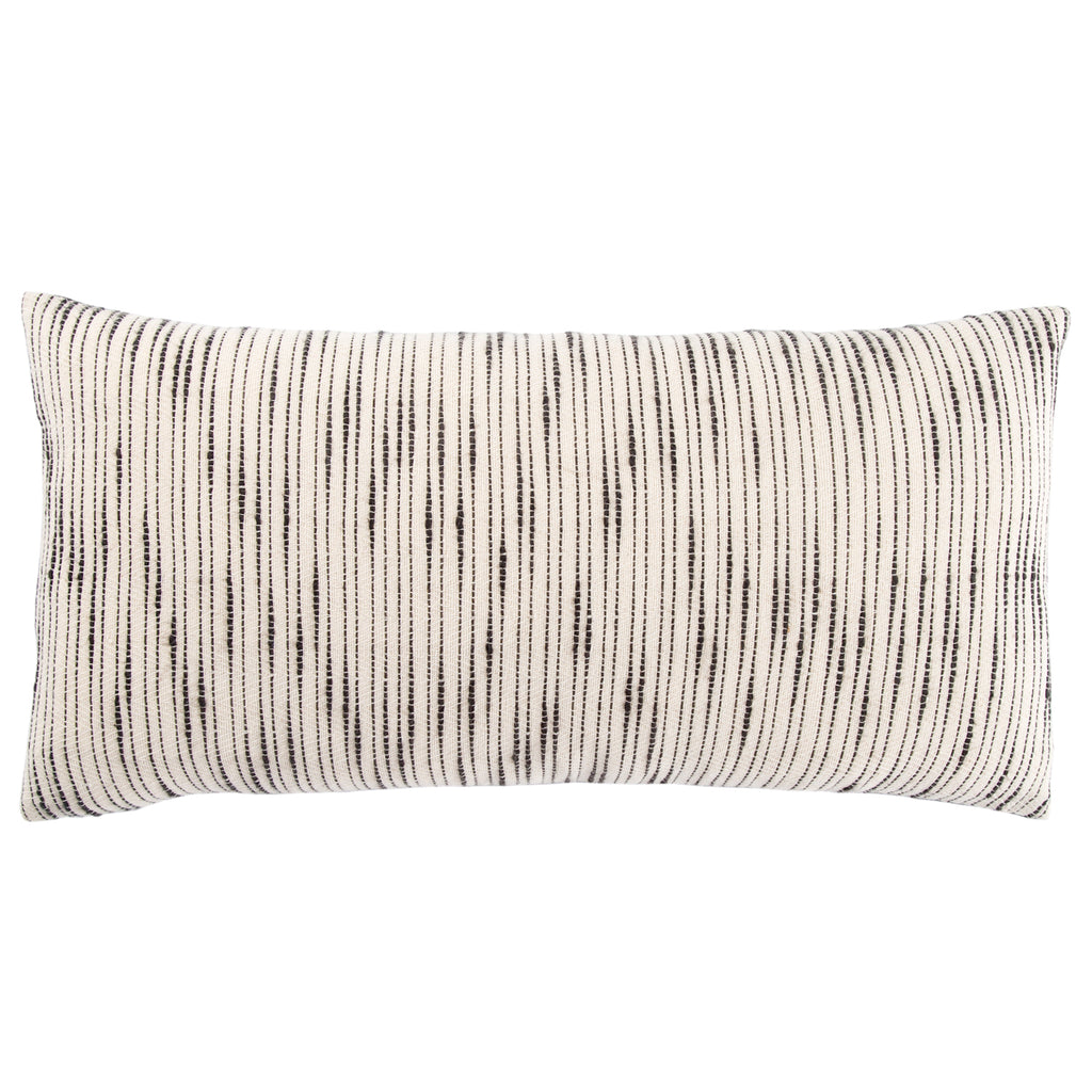 The Jaipur Mercado pillow collection marries bohemian charm and irresistible texture. The Linnean lumbar pillow is crafted of soft cotton, featuring a stitched linear design that recalls a traditional raw silk look. In contrasting charcoal gray and ivory, this plush accent complements a range of stylish spaces.