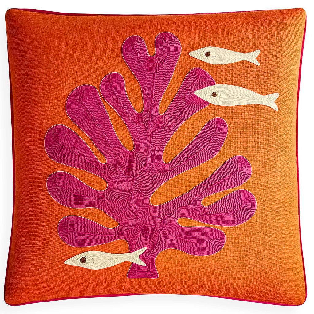 Evocative seaside icons in a bright palette—fresh, clean French 50s jet set glamour. Our Playa pillows feature concentric cord embroidery applied to dyed linen. Metallic gold thread outlining our graphics adds sparkle. Eye-catching accent pillows on their own, or group them for a textural 'scape. Crafty in your Big Sur bungalow, bold in your Mediterranean pied-à-terre.
