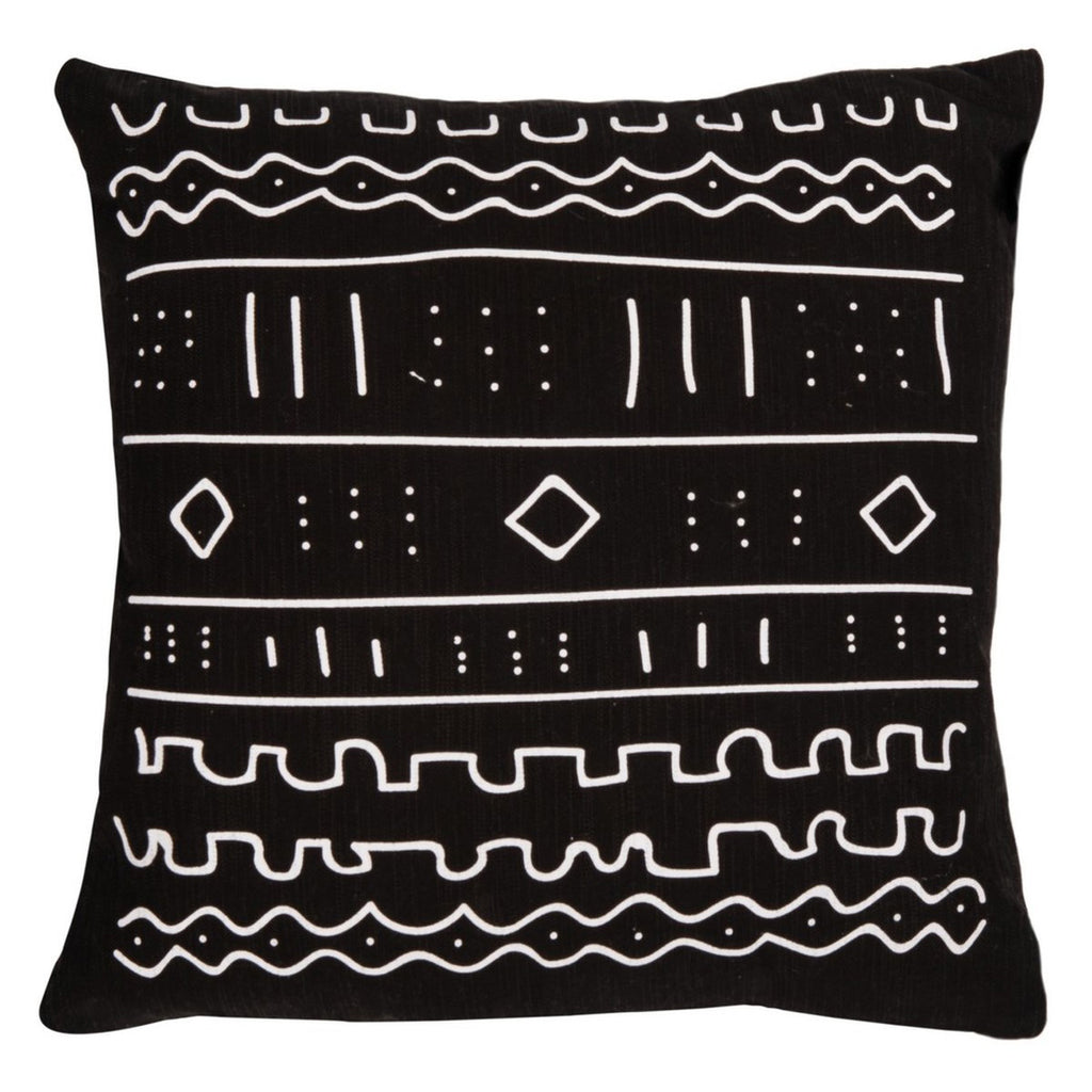 Ancient tribal symbols inspired the cultured styling of this accent pillow. With its unmistakable boho flair, this trendy throw pillow accentuates contemporary-styled room decor with a vivid Black cover and crisp White designs. Made using a blend of cotton and linen blend for a fabulous soft-to-the-touch feel.