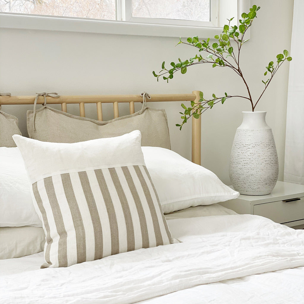 The meticulously woven construction of the Mead Linen Throw Pillow boasts durability and will provide natural charm into your decor space. Made with Linen, in India, Spot Clean Only, Line Dry.