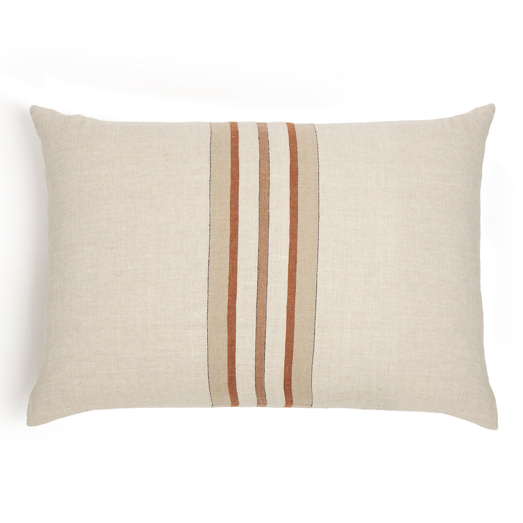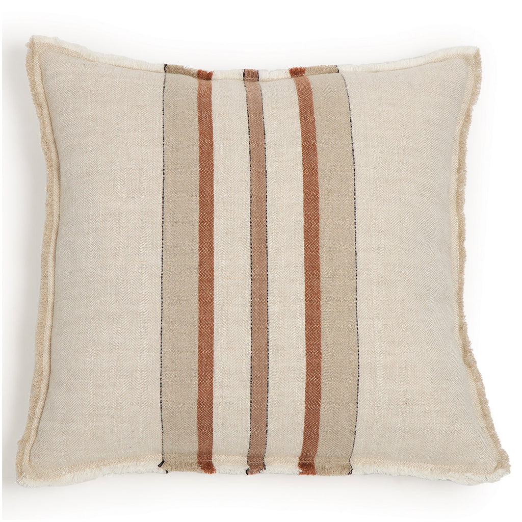 The Beck Collection is handloomed from heavyweight linen, featuring a subtle herringbone pattern with rows of stripes on opposite ends and a subtle frayed edge.Add dimension to your pillow stack with 20in squares in Beck’s gentle geometry. Our signature washed linen is finished here with a soft fray on each side.