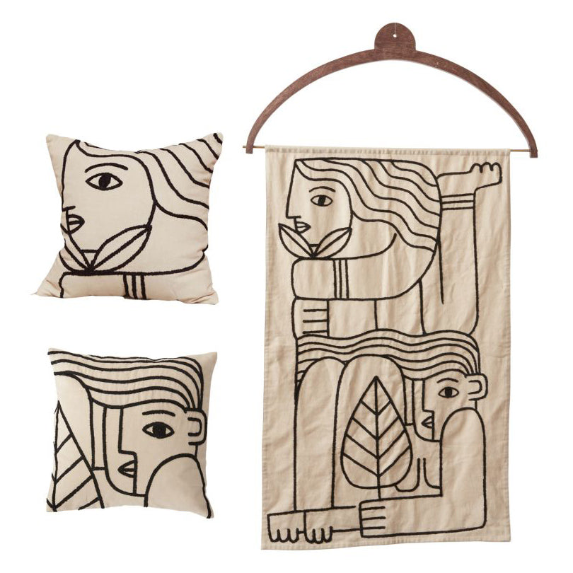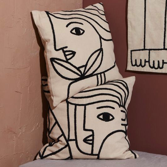 Add woven texture to your decor with the Soraya Pillow, featuring artful black line work embroidered on cotton, inspired by Latin American totems & artwork. A hidden back zipper allows for removal of the included pillow insert.