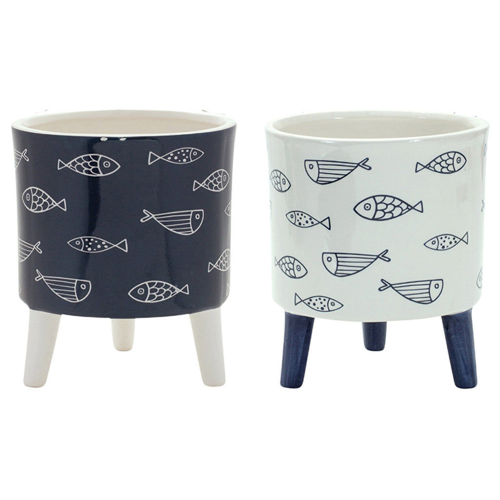 Display your indoor plants in style with this beautiful set of Decorative Footed Fish Pots. The nautical fish design paired with the cool blue and white tones is the perfect combination to create a timeless display. The quality dolomite composition is sure to last for seasons to come. Complete the look by adding a faux potted plant or floral arrangement to the pot.