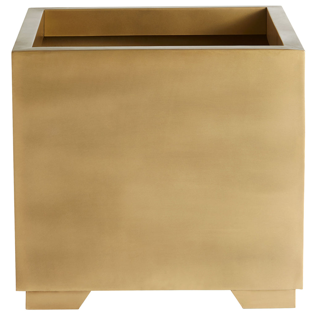 With a smooth, gold finish and cubic shape, the Aster planter serves as a subtly elegant boost to any atmosphere. Fill with decorative accents or grow your favorite live foliage. The Aster planter will enhance many different styles and upholds a sense of sophistication. Crisp-edged shape | Not water tight | Use with liner | Indoor Use Only