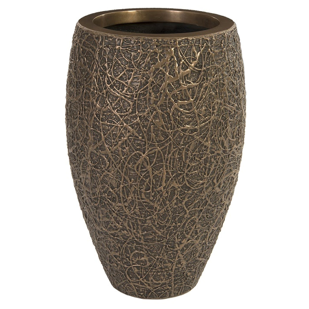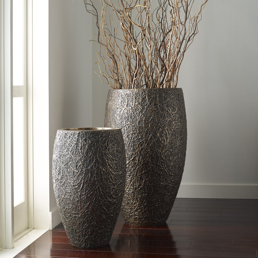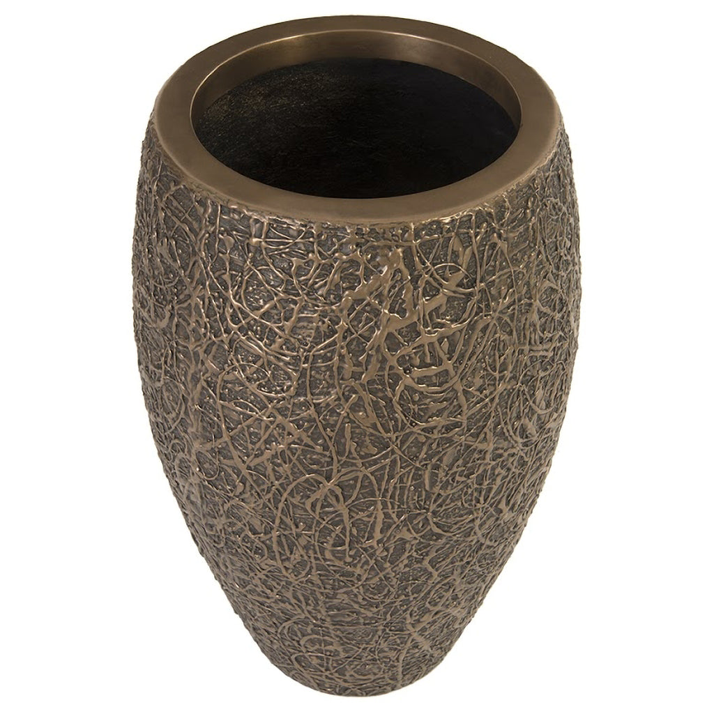 The metallic finish on the String Theory Planter convinces the eye that this garden planter is made of metal but it's fashioned from composite, which talented finish artisans have given a gleaming sheen. This means it will far outlast any planter made from a material that could rust.
