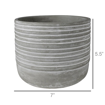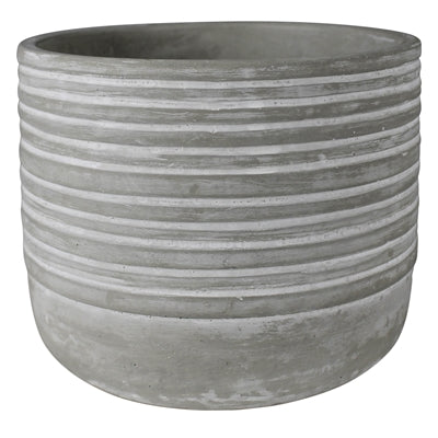 Constructed from sturdy cast cement with an embossed stripe and a whitewash finish these cachepots brings a contemporary edge to garden decor. Sized for a 6in drop in pot. Watertight.