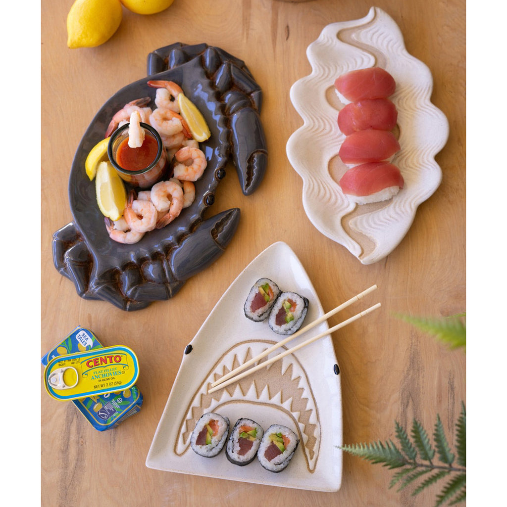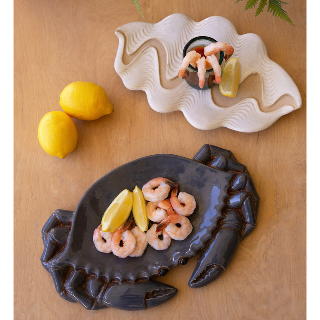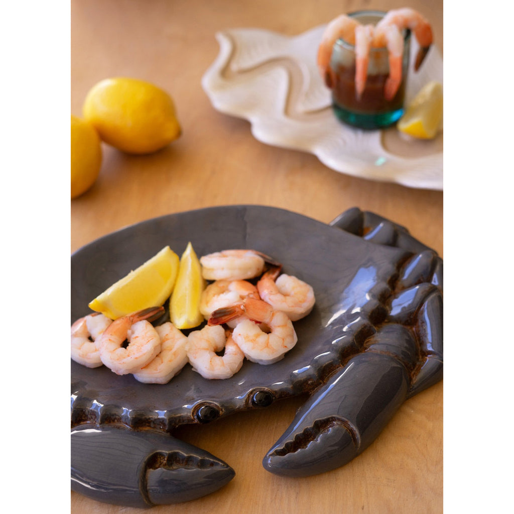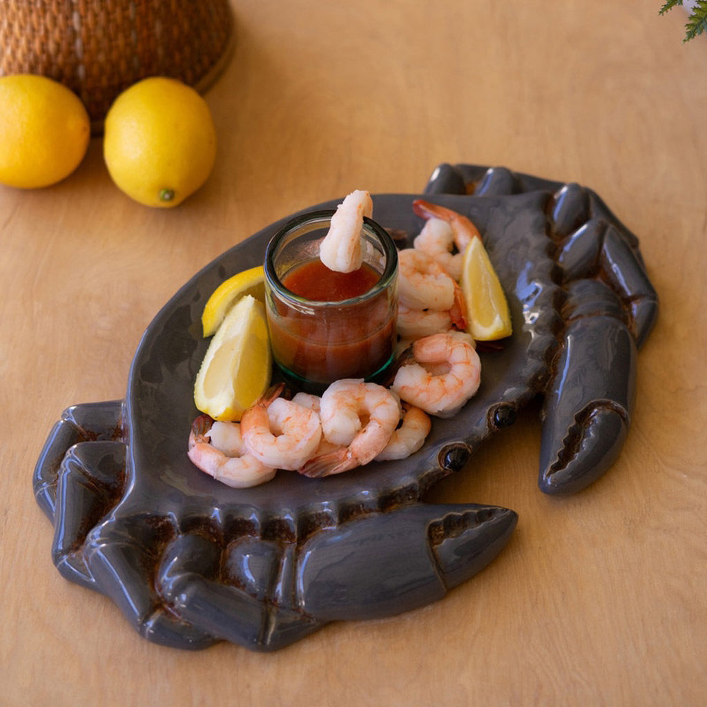Serve up the best of the sea on this ceramic blue crab platter. Beachside retreats need this 13in x 8.5in blue crab. Whether you're dining or dallying, this platter serves up the fun.