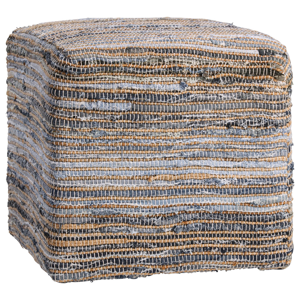 Add a cozy touch with the Frisco Handwoven Square Pouf. Customized with a unique variety of textures and materials utilizing recycled denim and natural jute upholstery with wood filler. This ottoman is meticulously handcrafted by artisans in India, due to its handcrafted nature, each piece will be unique.