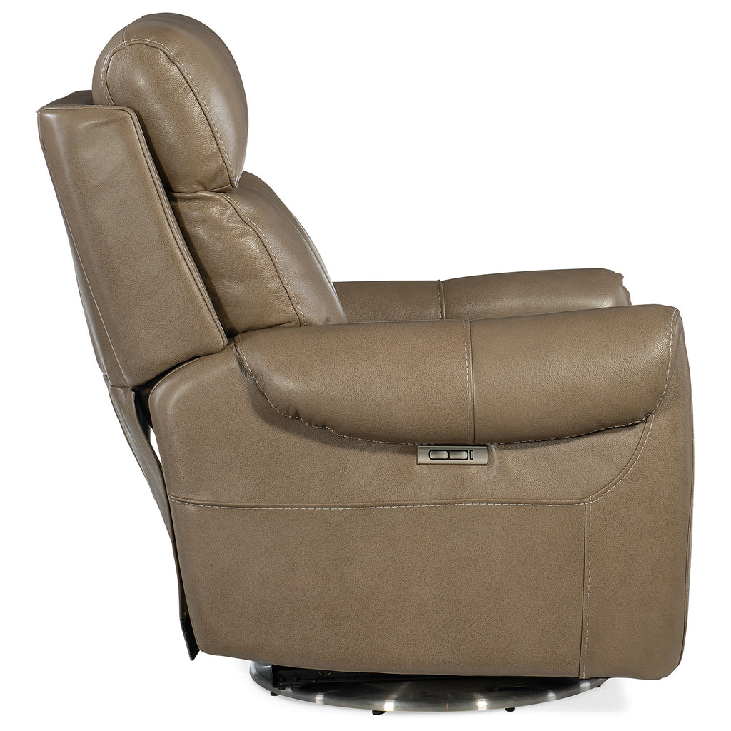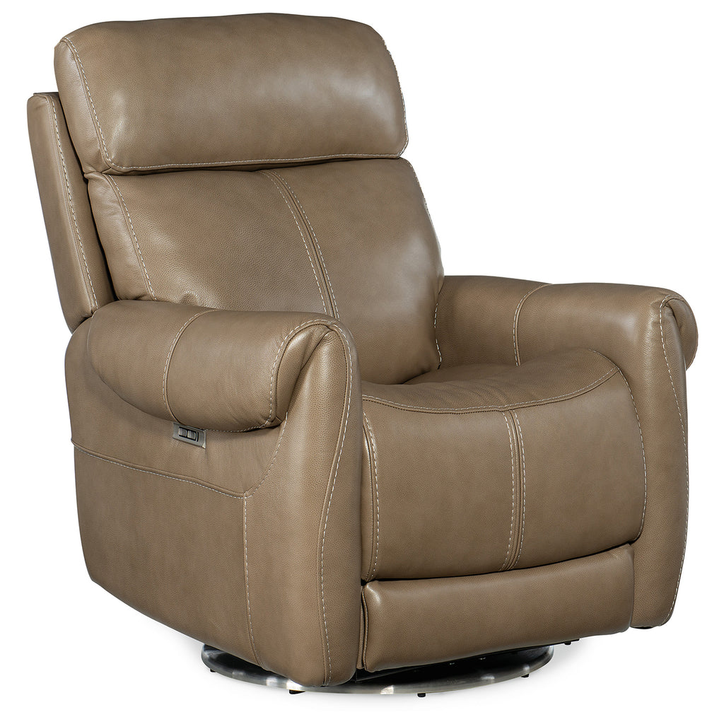 With a modern flair and designer stitched trim detail, the Sterling Swivel Power Recliner with Power Headrest holds nothing back for your comfort. This Zero Gravity recliner gives you the feeling of being suspended, offering maximum comfort for your back and shoulders. Featuring a convenient USB port, the recliner has a bustle back and is covered in the top grain leather.