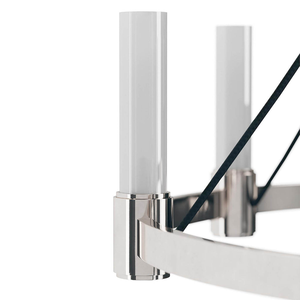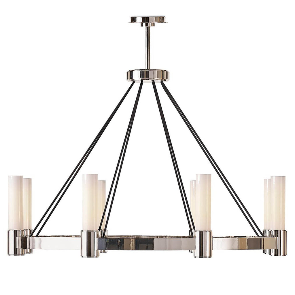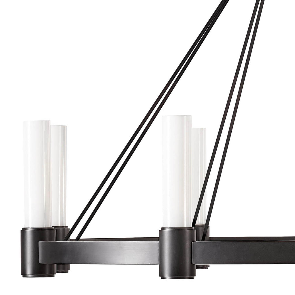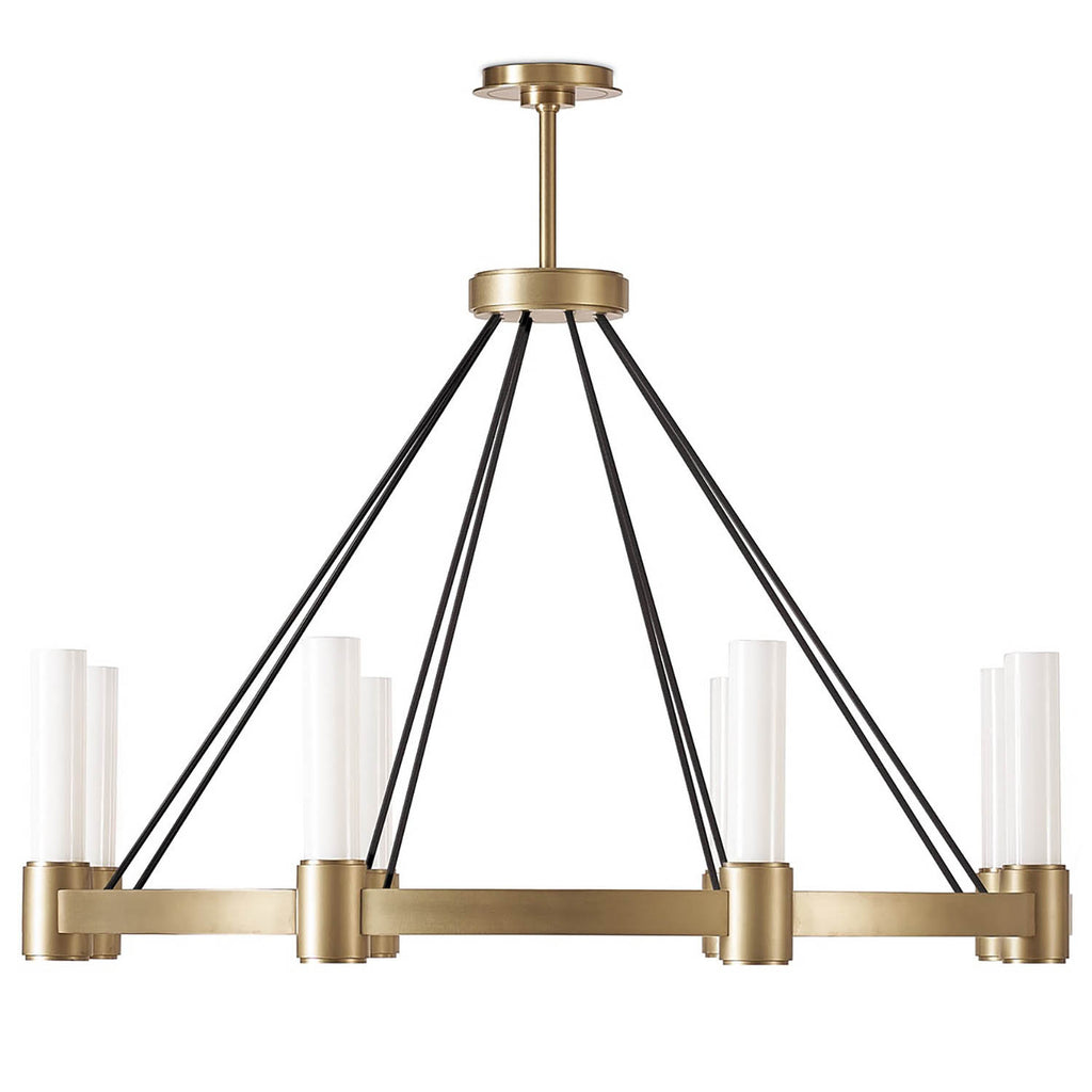 With quiet strength, the Dixon Chandelier confidently holds an octet of opal white glass pillars aloft in its arms. Each cylinder is open at both ends to shine light above and below. Simple and stunning in a dining room but an equally bold choice in your kitchen.