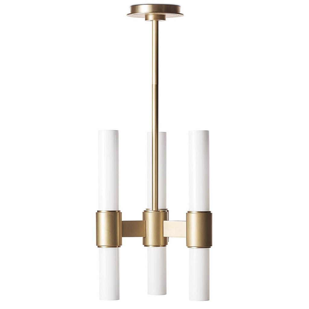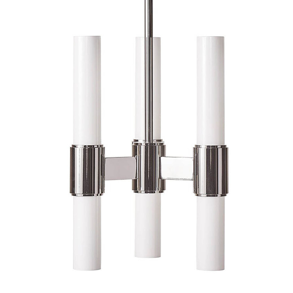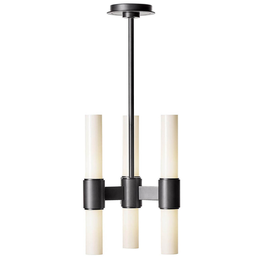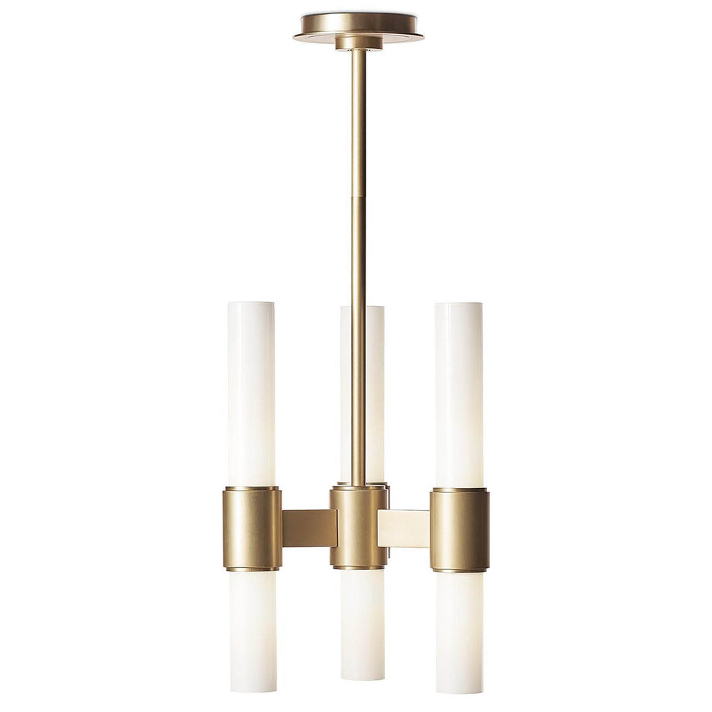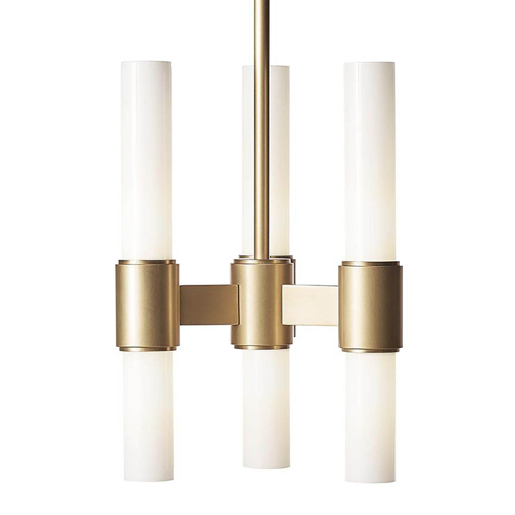 With quiet strength, the Dixon Pendant confidently holds six opal white glass pillars aloft in its arms. Open at both ends to shine light above and below. A single fixture makes a stunning entryway or try a repeating pattern of three down a hallway or over your kitchen island.