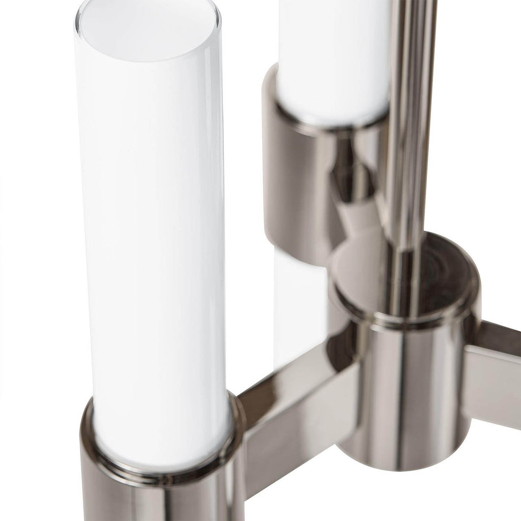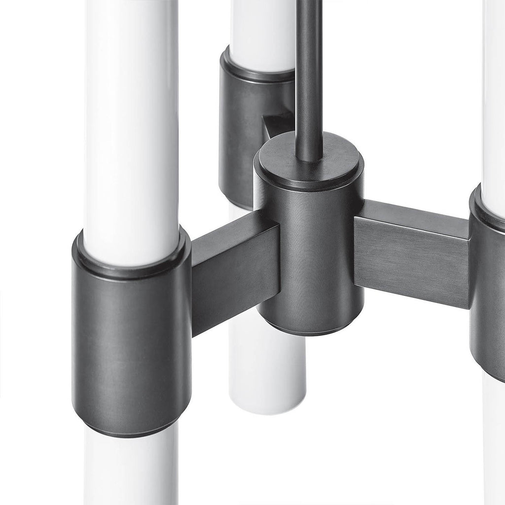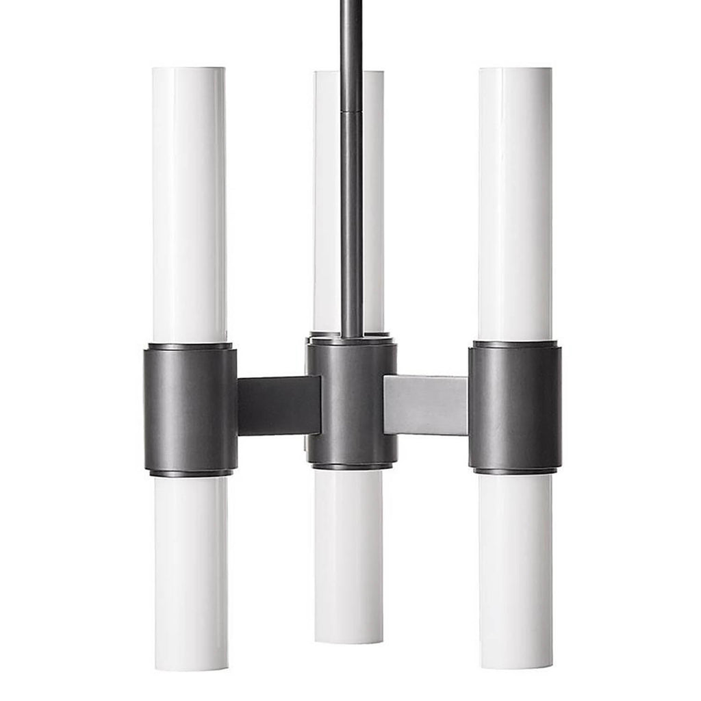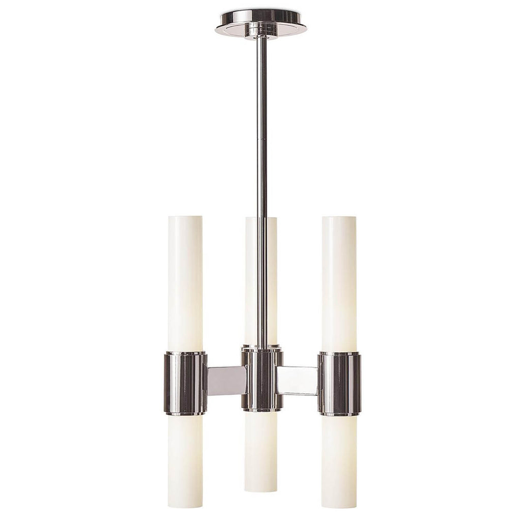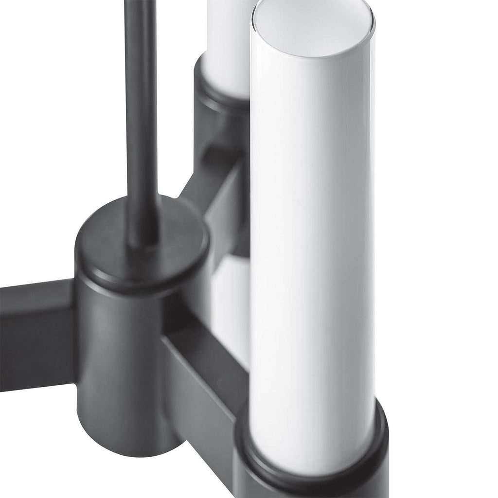 With quiet strength, the Dixon Pendant confidently holds six opal white glass pillars aloft in its arms. Open at both ends to shine light above and below. A single fixture makes a stunning entryway or try a repeating pattern of three down a hallway or over your kitchen island.