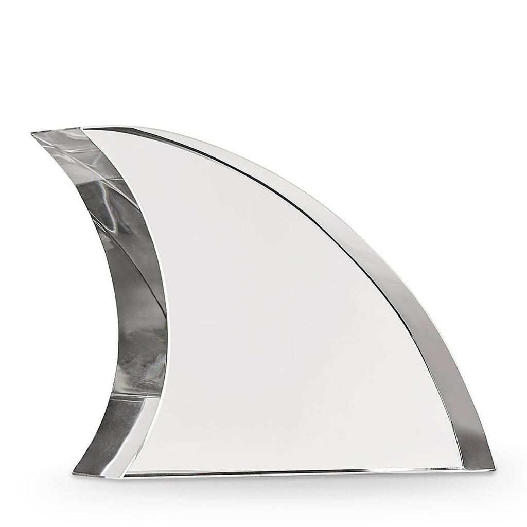 Inspired by a vintage art piece, the sharp Fin Crystal Accessory cuts a graphic figure for an elevated coastal-modern vibe. The clear sculptural fin invites light to reflect and flow through your space with a nod to the deep blue sea.