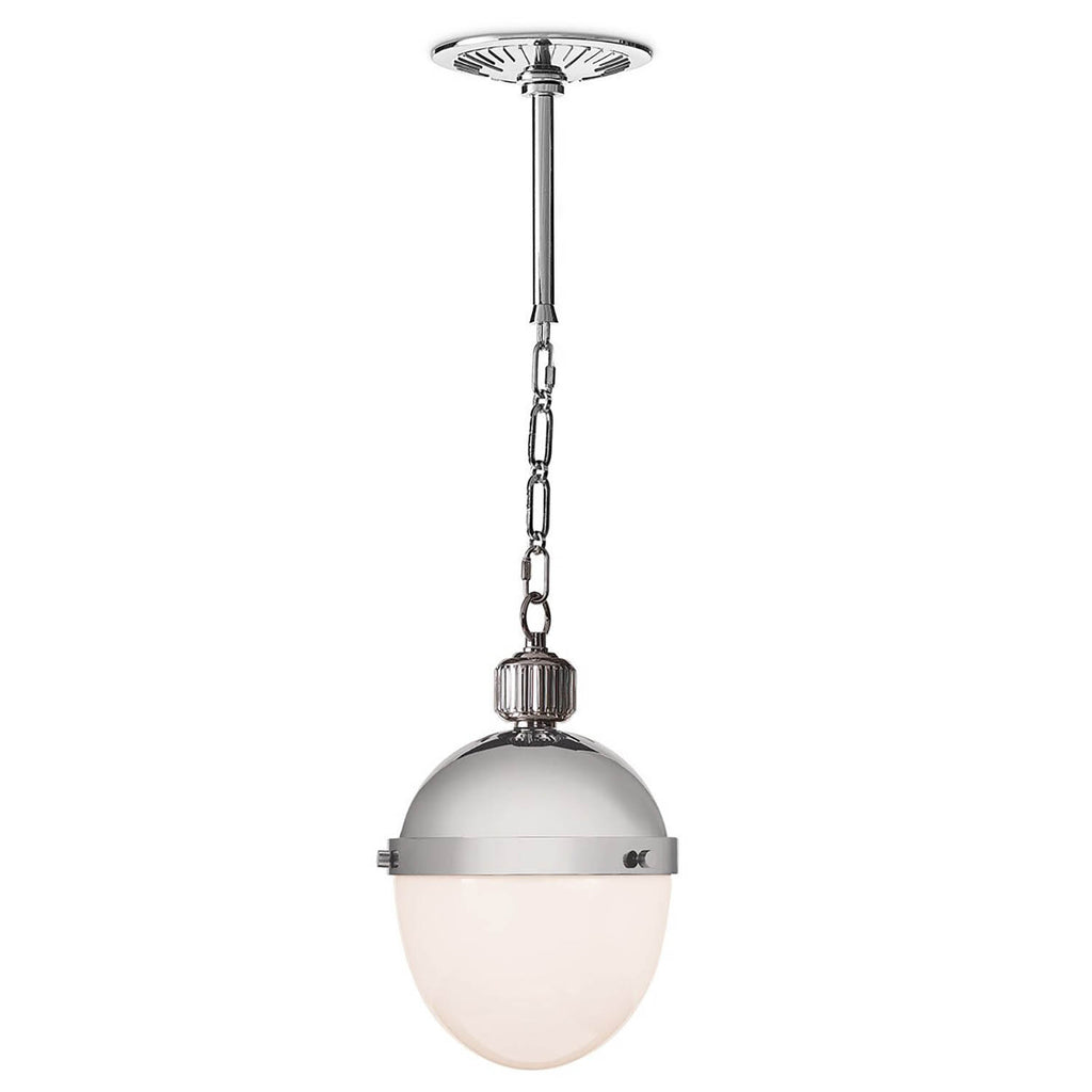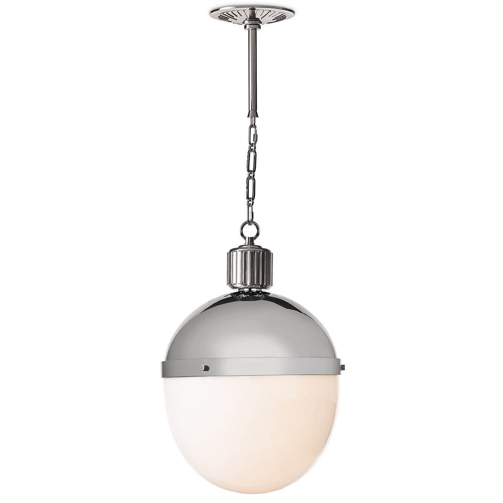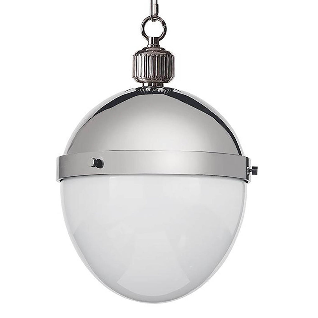 Our Otis Pendant Large blends 20th-century style with modern materials for a timeless look—in a generous, statement-making size. Classic milk glass gives a soft, diffuse light that is gentle on your eyes. It's the perfect way to add a warm glow in a breakfast room, over a large kitchen island or in an open loft-space. The clean polished nickel finish pairs beautifully with white marble and surfaces with cool undertones.